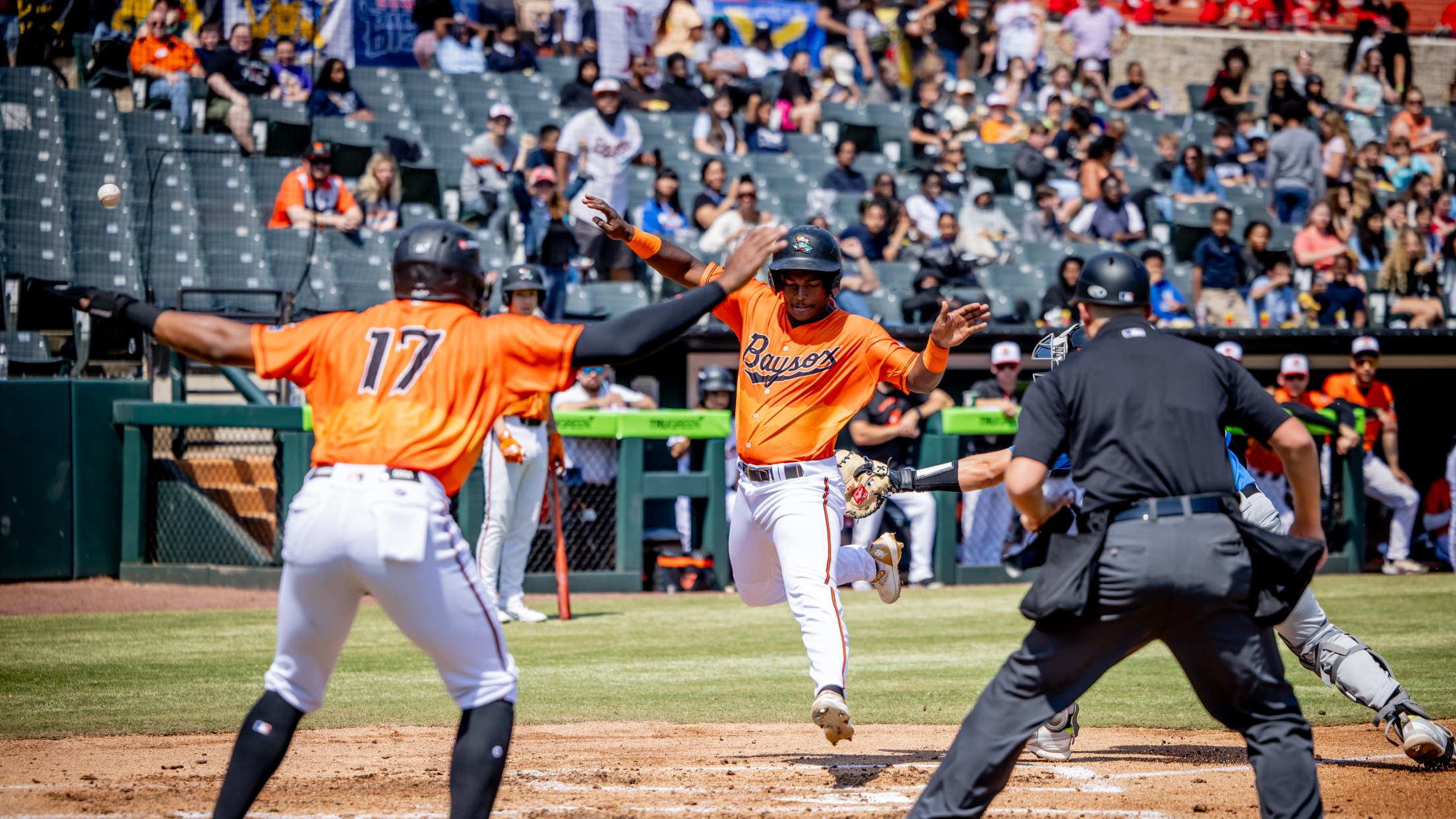 On the mound, the Baysox navigated traffic throughout the afternoon. Left-handed starter Luis De León struck out four through three scoreless frames but exited the game in the fourth inning as a precaution after being struck with a comebacker on his non-throwing arm.