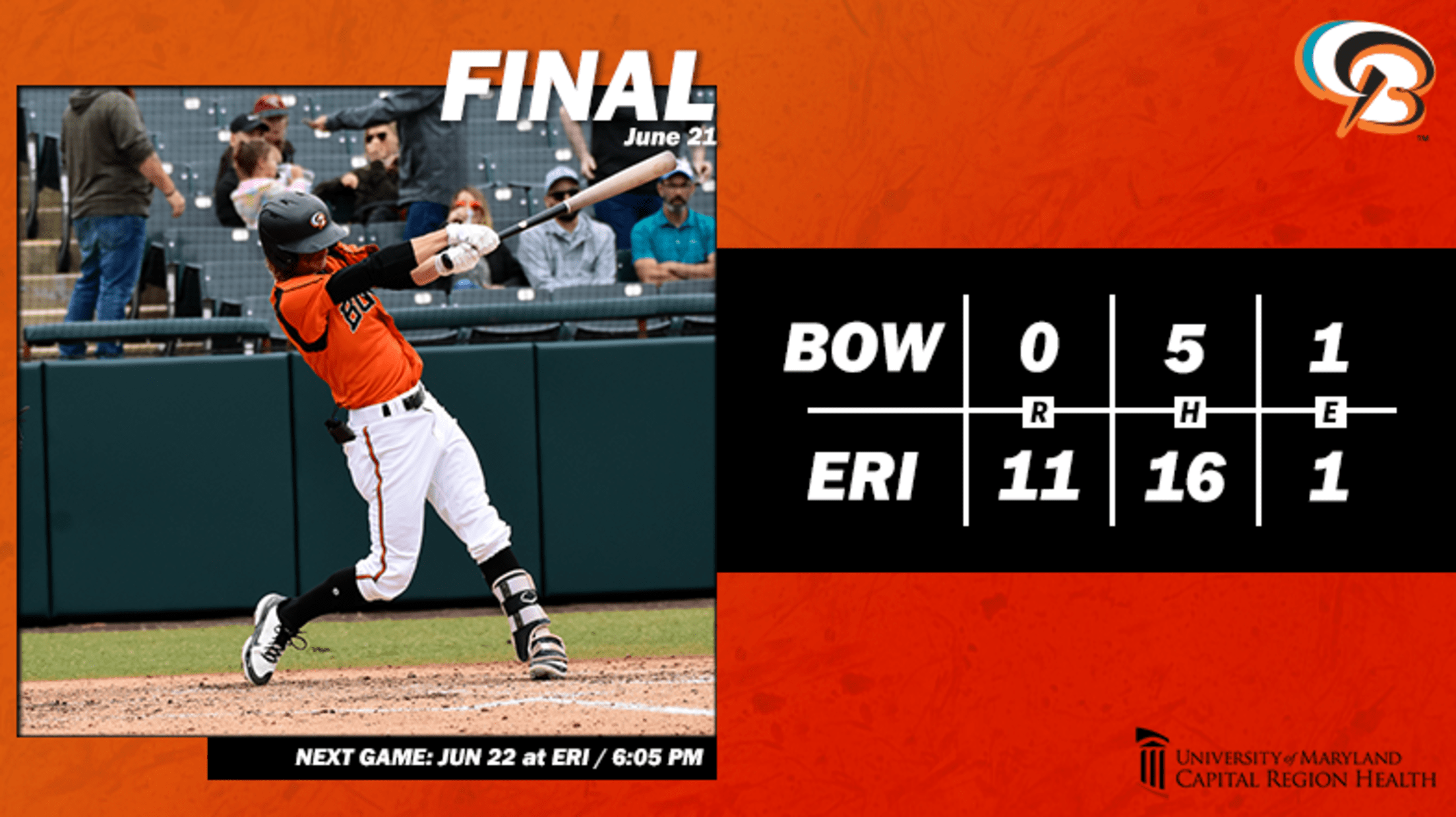 As Bowie’s losing skid extends to three-consecutive games, their record falls to 25-39 on the season. Bowie and Erie will continue their six-game set on Wednesday at UPMC Park, with the first pitch scheduled for 6:05 p.m.