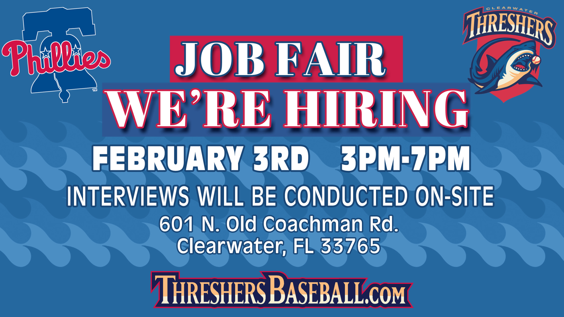 The Phillies and Threshers are hiring now for BayCare Ballpark seasonal positions. A job fair will be held in-person at BayCare Ballpark in Clearwater on Thursday, Feb. 3, from 3 p.m. until 7 p.m.