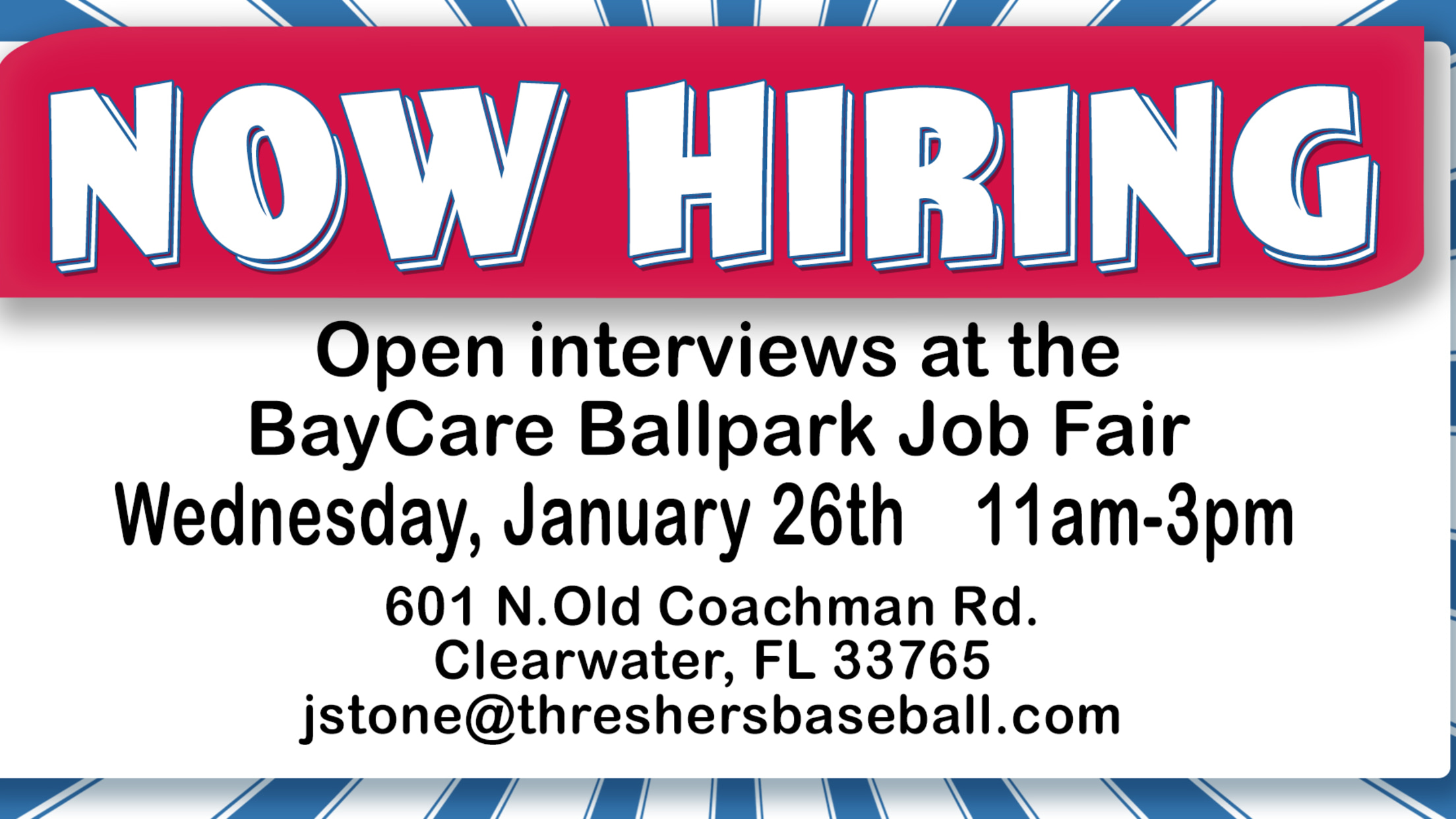 CLEARWATER, Fla. - The Phillies and Threshers are hiring now for BayCare Ballpark seasonal positions. A job fair will be held in person at BayCare Ballpark on Wednesday, January 26 from 11 a.m. until 3 p.m. Multiple positions in Food & Beverage are available. Interviews will be conducted on-site. Positions