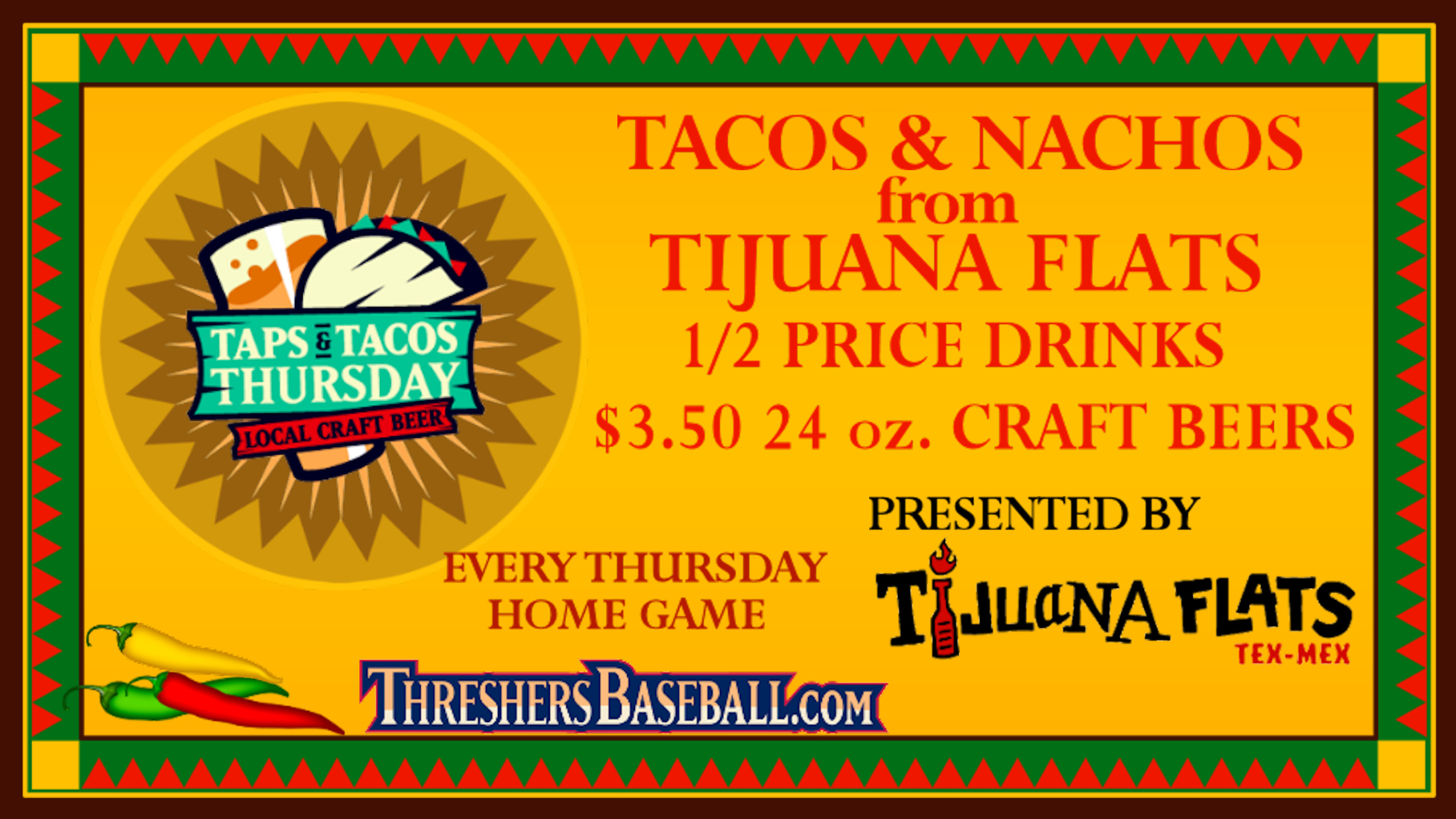 CLEARWATER THRESHERS TICKETSMay 31 is a Taps & Tacos Thursday by Tijuana Flats at Spectrum Field for the Clearwater Threshers game vs. the Fort Myers Miracle. Gates open at 6 p.m. for the 7 p.m. game. ALL beverages are half-price on Thursday nights, including soft drinks. That makes our 24 oz.