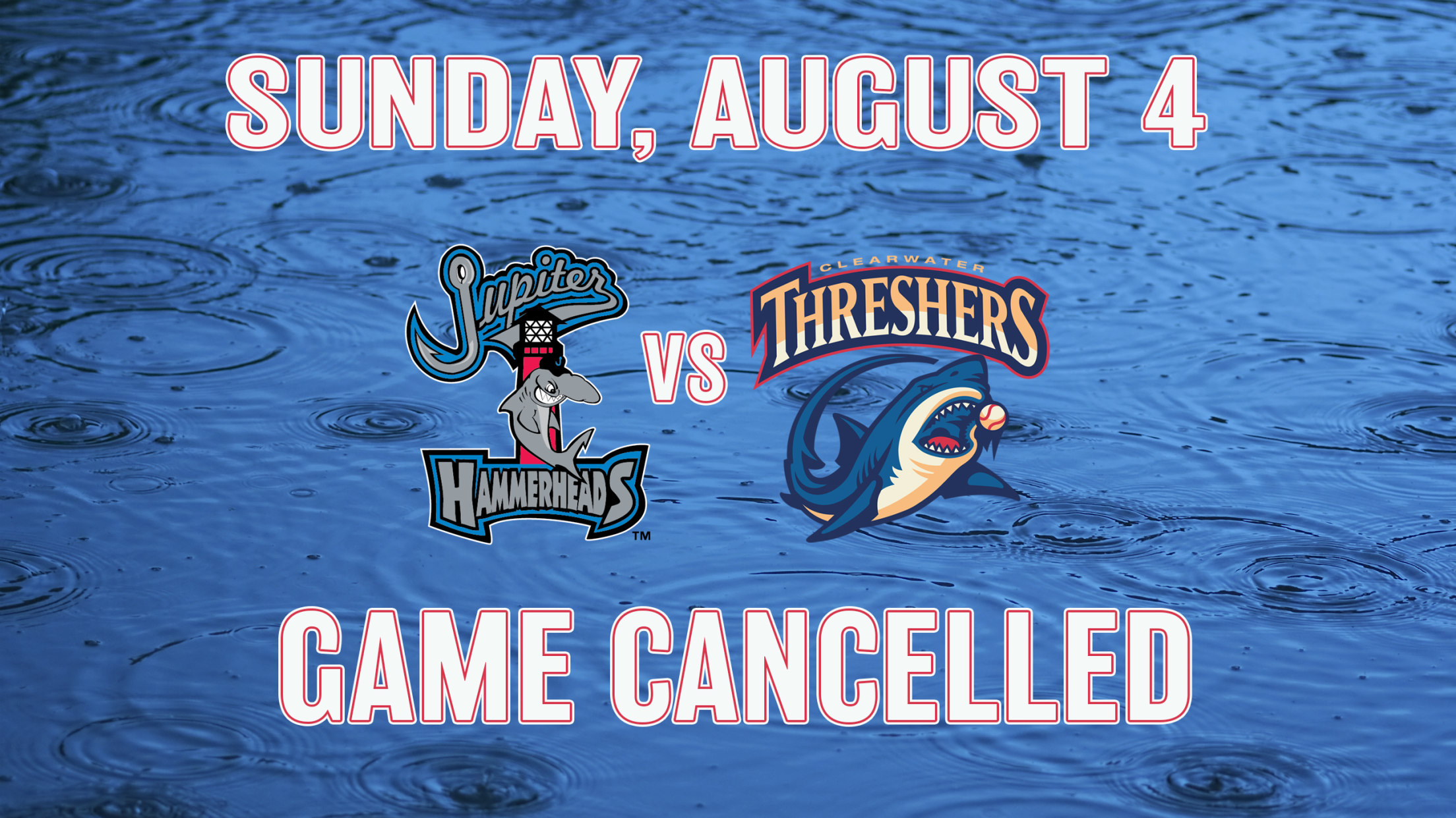 CLEARWATER, Fla. - With the approach of Tropical Storm Debby and forecasted severe weather for the area, the 12 p.m. Sunday, August 4th, Clearwater Threshers versus Jupiter Hammerheads baseball game at BayCare Ballpark has been cancelled.
