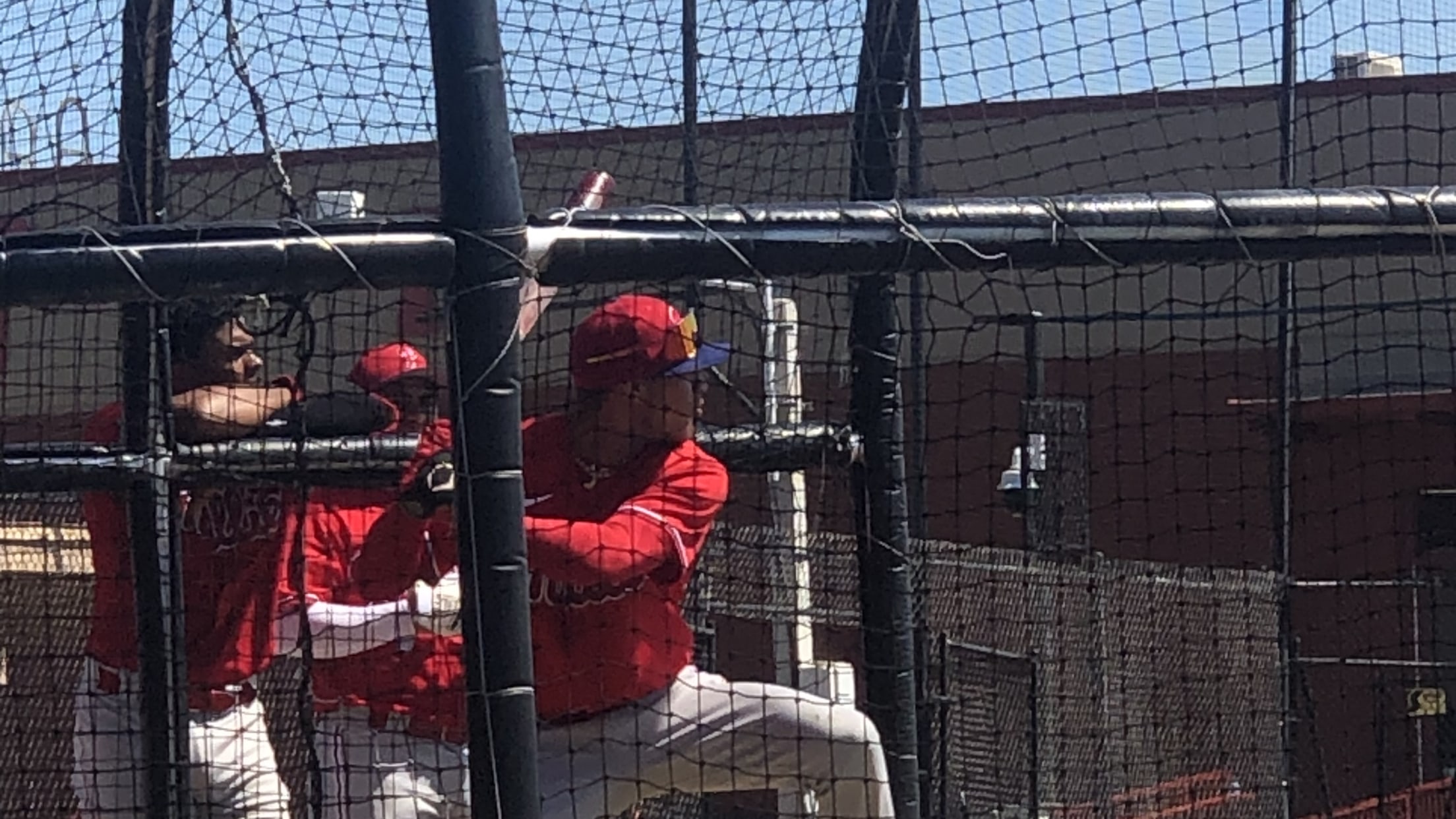 Yhoswar Garcia taking cuts during Phillies Minor League camp on March 14th.
