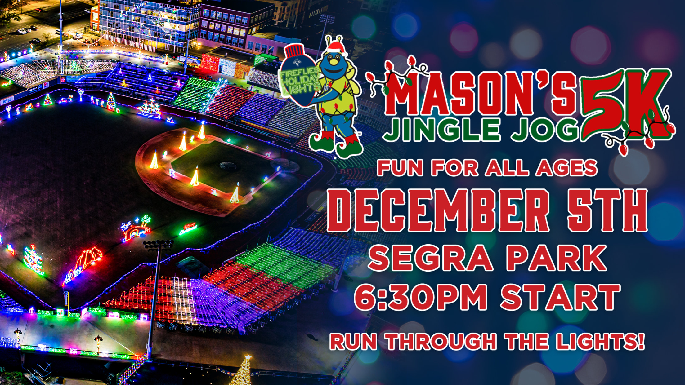 COLUMBIA, SC – The Columbia Fireflies today announced the return of their annual 5K race and walk, Mason’s Jingle Jog. For the first time the race will take place at night, 6:30 pm on December 5, with runners and walkers winding their way through Fireflies Holiday Lights at Segra Park, running through the BullStreet District, before finally finishing the 5K course on field within the lights.
