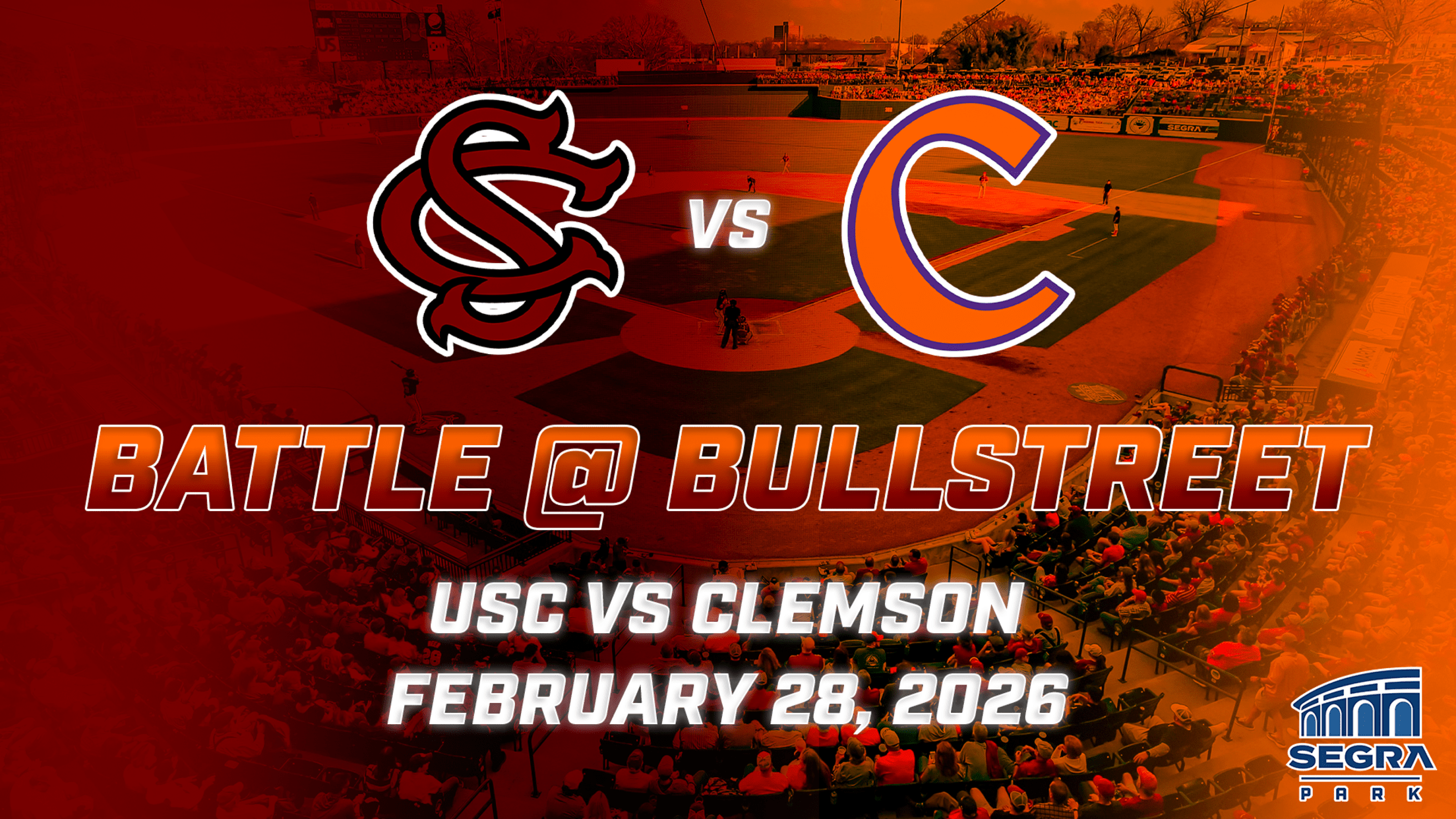 COLUMBIA, S.C. — The Columbia Fireflies, in conjunction with the Clemson University and University of South Carolina Athletic Departments, today announced that Segra Park will play host to the fourth Battle at BullStreet. The contest between The Tigers and The Gamecocks is slated for Saturday, February 28 at 3 pm.