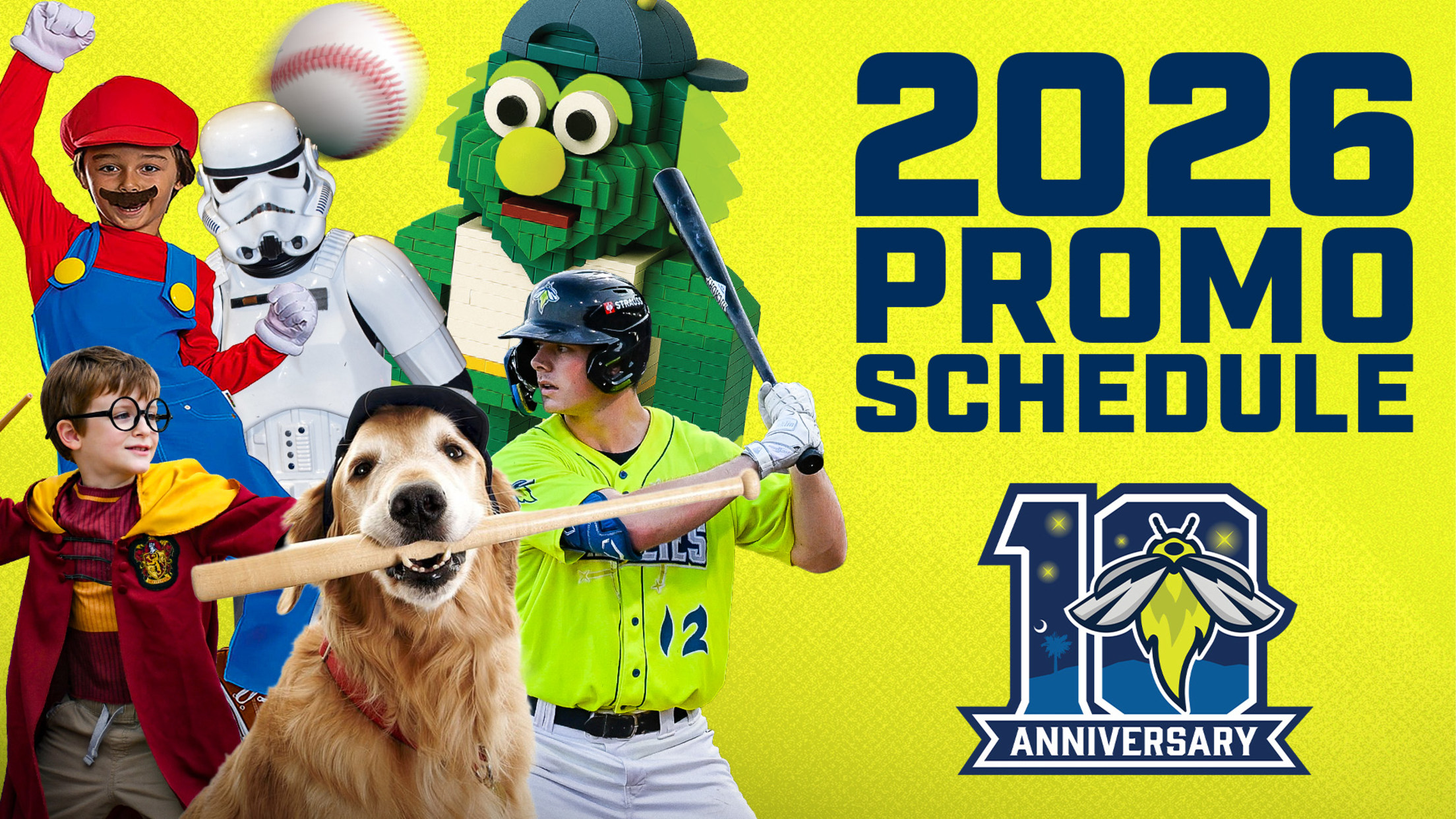 COLUMBIA, S.C. — The Columbia Fireflies announced their promotional schedule for their historic 10th anniversary season beginning April 7 at Segra Park. The club has stuffed its 66 home games with enticing giveaways, fan favorite theme nights and affordable food and beverage deals.