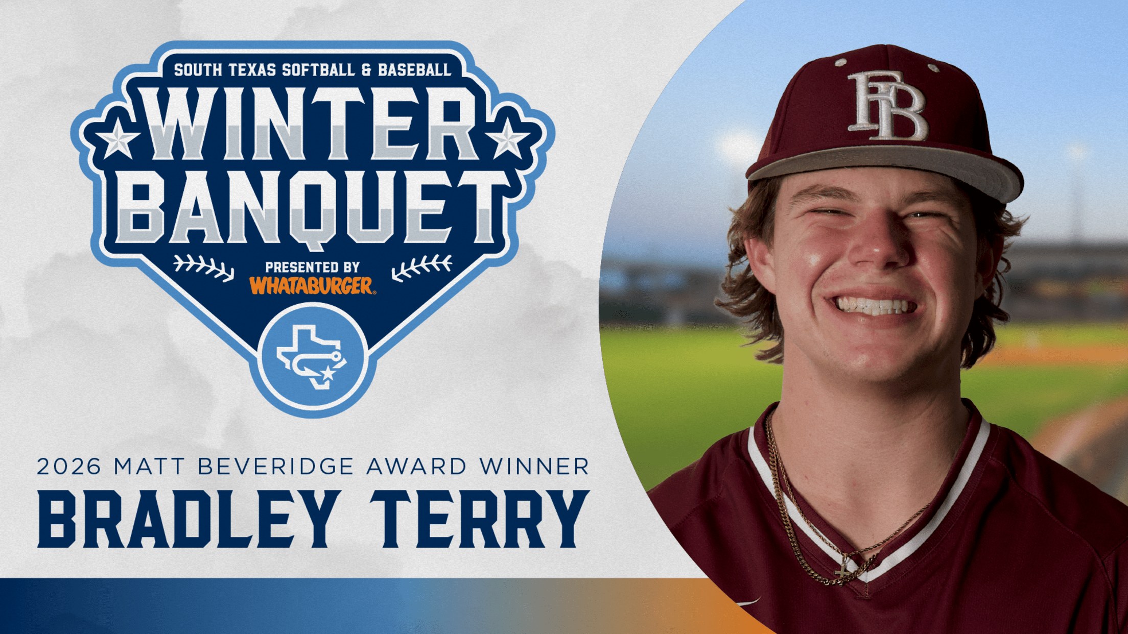 CORPUS CHRISTI – Bradley Terry of Flour Bluff High School is the 18th recipient of the Matt Beveridge Award, given annually to a high school baseball senior student-athlete who exemplifies character, courage, leadership, and spirit. In addition to being recognized Thursday at the South Texas Softball & Baseball Winter Banquet,