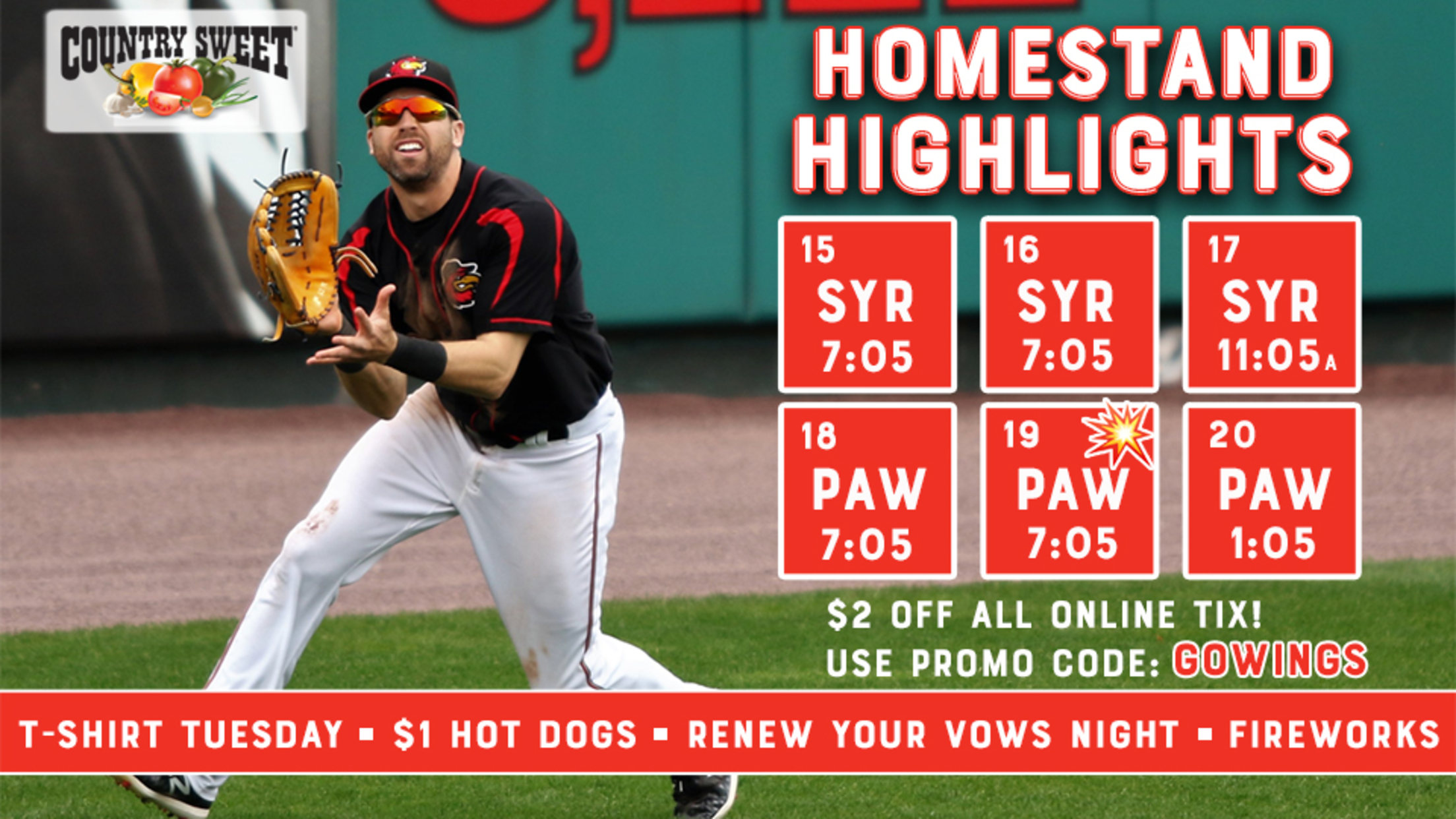 All tickets purchased online for this homestand are $2 OFF using promo code: GOWINGS.