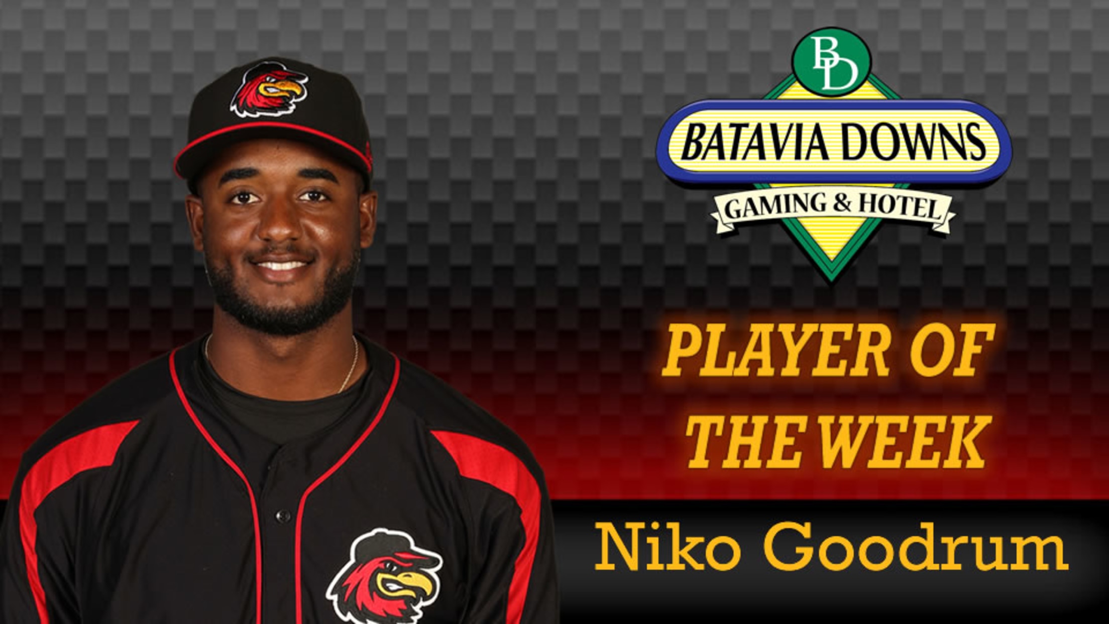 Infielder/outfielder Niko Goodrum has been named the Batavia Downs Gaming and Hotel Player of the Week for May 29-June 4, the second straight week he has been honored.