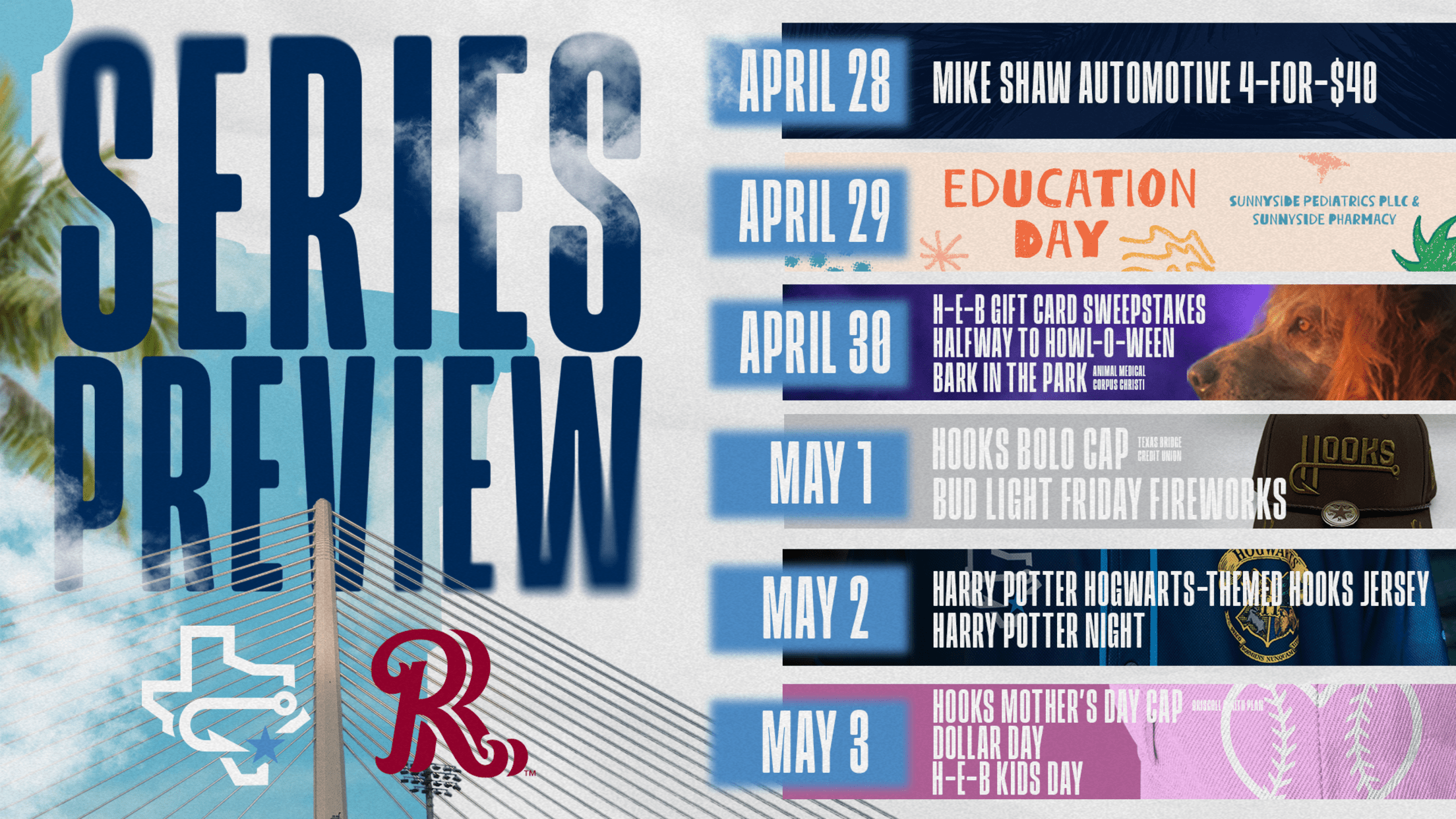 Halfway to HOWL-o-ween, H-E-B Gift Card Sweepstakes, Hooks Bolo Caps, Mother's Day Caps, Harry Potter Jerseys & Fireworks highlight fun