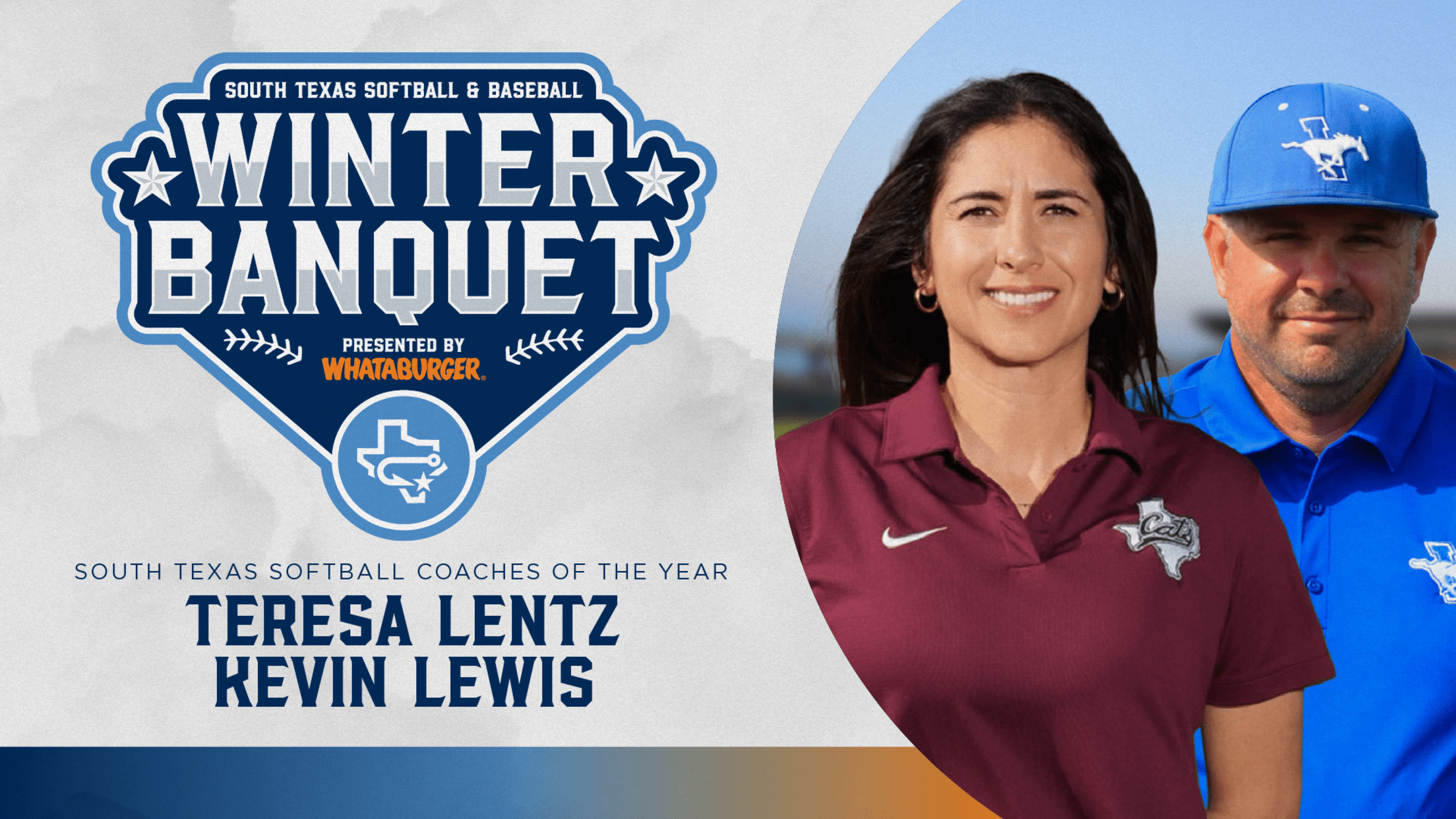 CORPUS CHRISTI – Teresa Lentz of Calallen and Ingleside’s Kevin Lewis will be recognized as the 2025 South Texas Softball Coaches of the Year on Thursday, January 15 at the Hilliard Center’s Henry Garrett Ballroom. The 20th South Texas Softball and Baseball Winter Banquet, presented by Whataburger, is headlined by