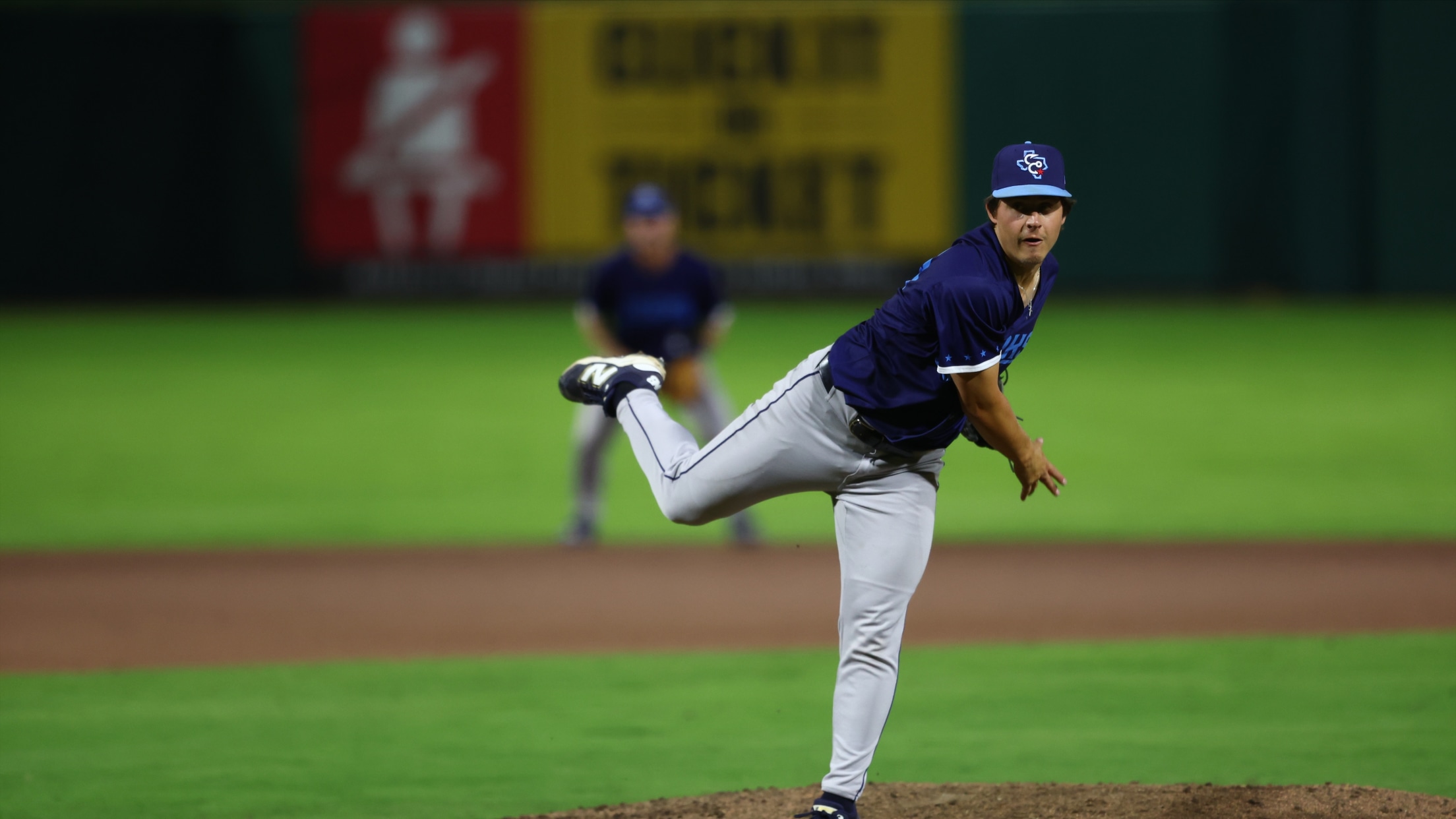 Joey Mancini was phenomenal in relief for the Hooks on Thursday, setting down all nine batters he faced with seven strikeouts (Braeden Botts)