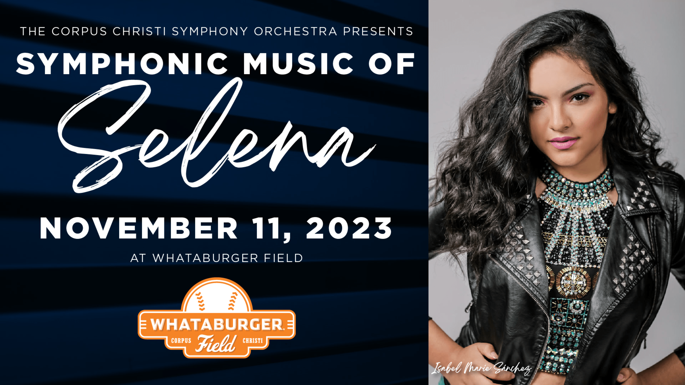 Featuring award-winning singing sensation Isabel Marie Sánchez and a 60-piece CCSO conducted by Dr. Abel Ramirez, Professor of Music at Del Mar College, the night pays tribute to the music of Selena. Additional performances include The Veterans Band of Corpus Christi, Flour Bluff High School Junior ROTC, Tuloso-Midway High School Mariachi Band, Corpus Christi ISD Youth Chorus, Texas A&M University-Kingsville Jazz Ensemble, Corpus Christi Veterans High School Vocal Ensemble/Poppies and the Kingdom of Christ Community Singers.