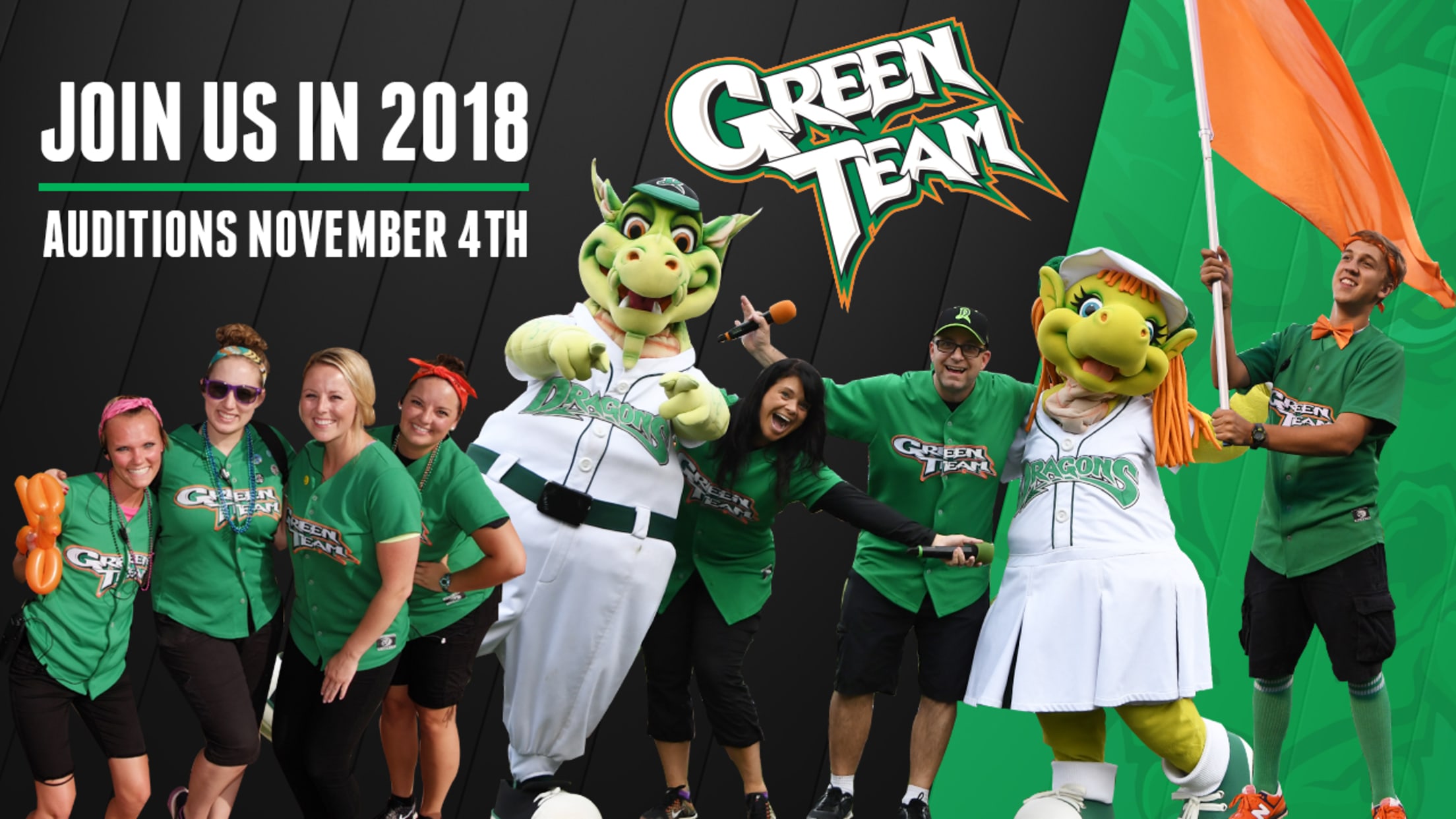 The Dragons will hold auditions for the "Green Team," on-field entertainment hosts, and mascot performers for the 2018 season. The Dragons are seeking fun, energetic, and enthusiastic performers for these positions.