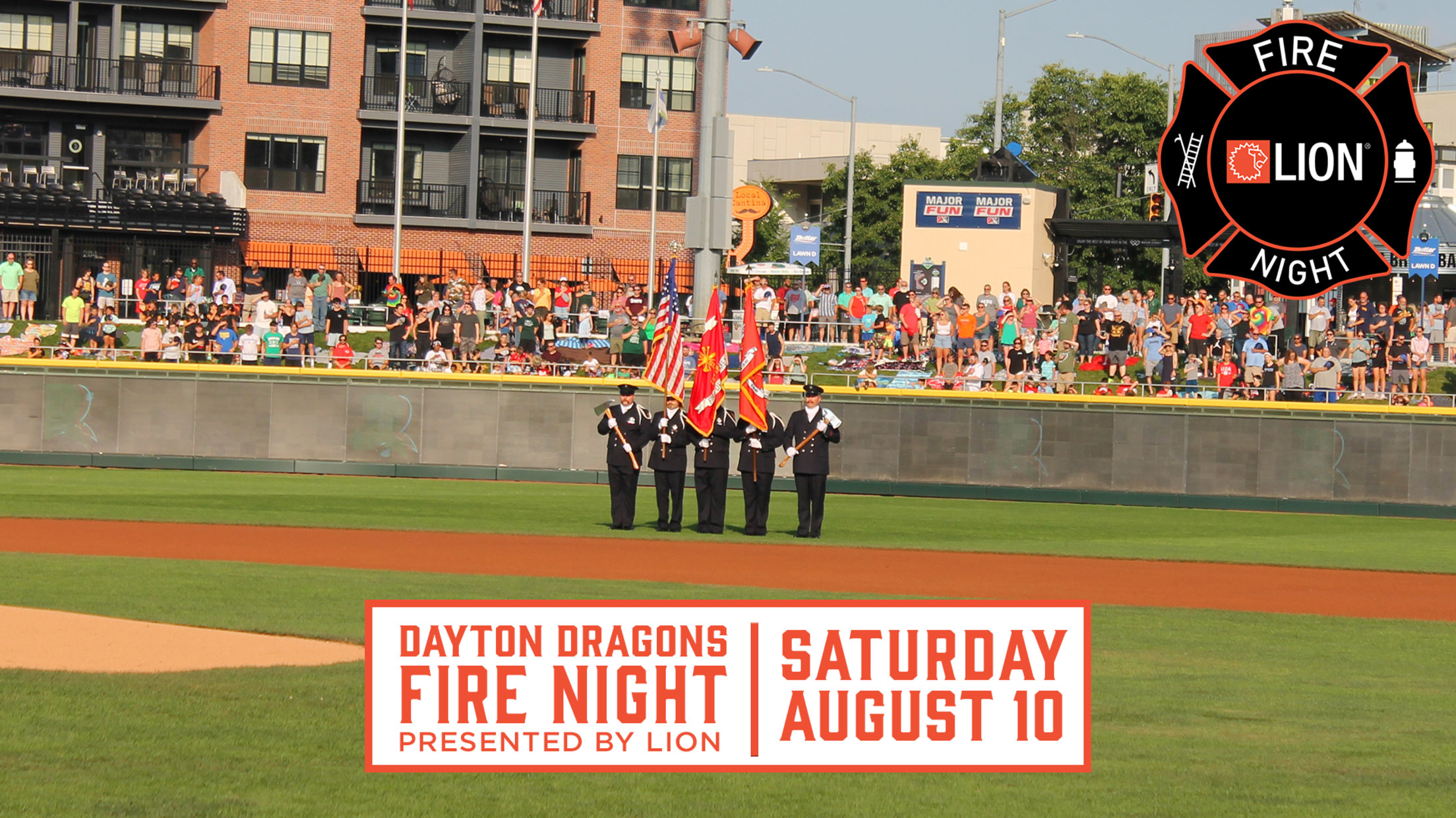 DAYTON, OHIO -- In partnership with LION and the Dayton Fire Department, the Dayton Dragons are excited to host Dayton Dragons Fire Night presented by LION on Saturday, August 10 at Day Air Ballpark in the heart of the Water Street District.
