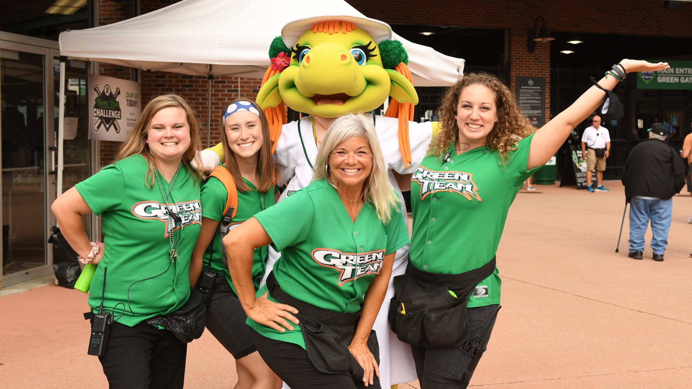 The Dragons “Green Team” orchestrates a variety of hilarious family-friendly skits during games. Each year, new skits and contests are brainstormed throughout the off-season and the Green Team rehearses and perfects the skits during pre-season and in the afternoons prior to games. The Dragons promise new skits, scoreboard videos, and entertainment acts with a family-entertainment theme.