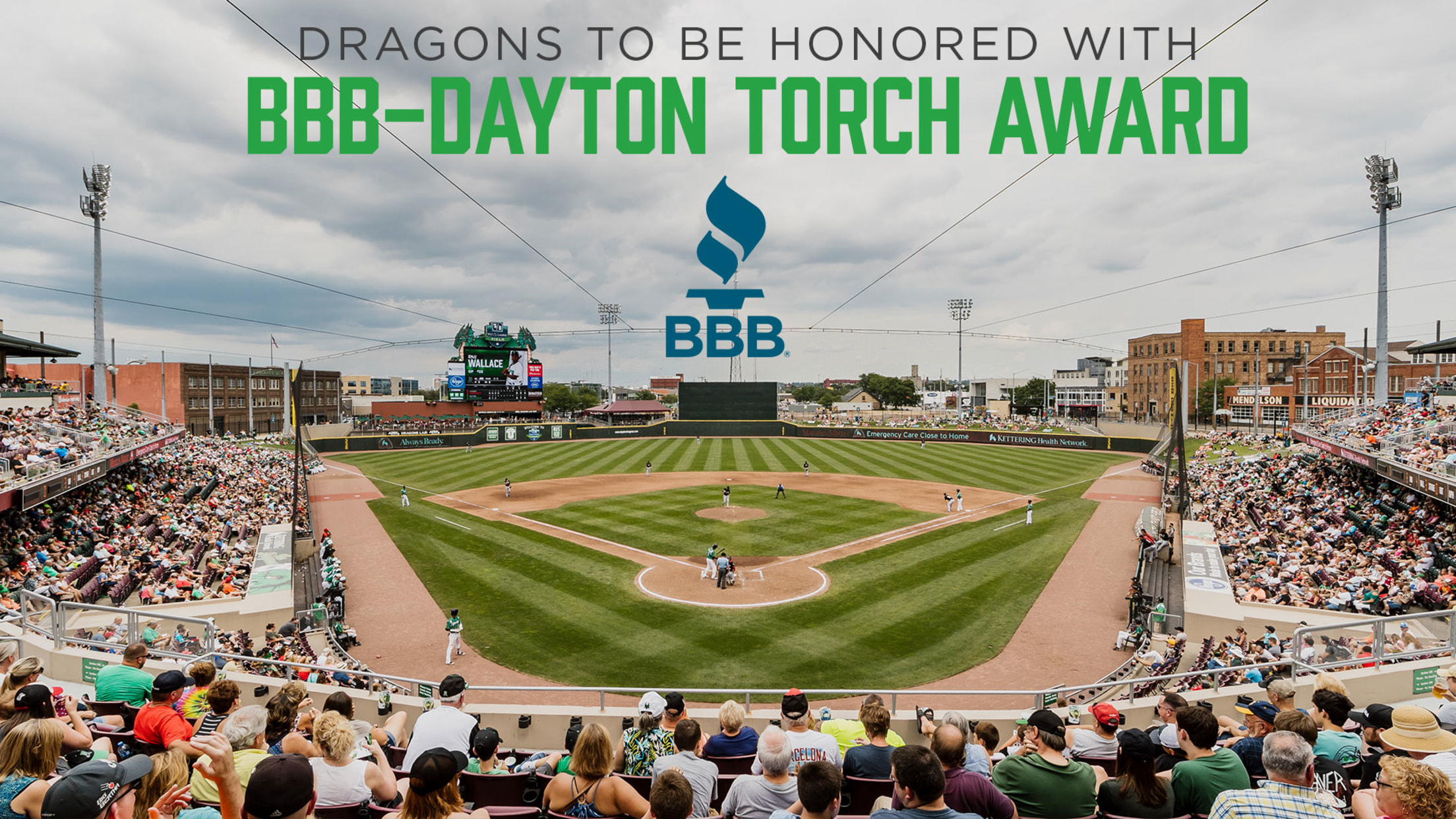 DAYTON, OHIO-The Dayton Dragons have been selected to receive the 10th annual Torch Award presented by the Better Business Bureau serving Dayton and the Miami Valley. The Dragons will receive the prestigious honor at BBB's Eclipse Integrity Awards on Tuesday, May 14 at David H. Ponitz Sinclair Center, 444 W.
