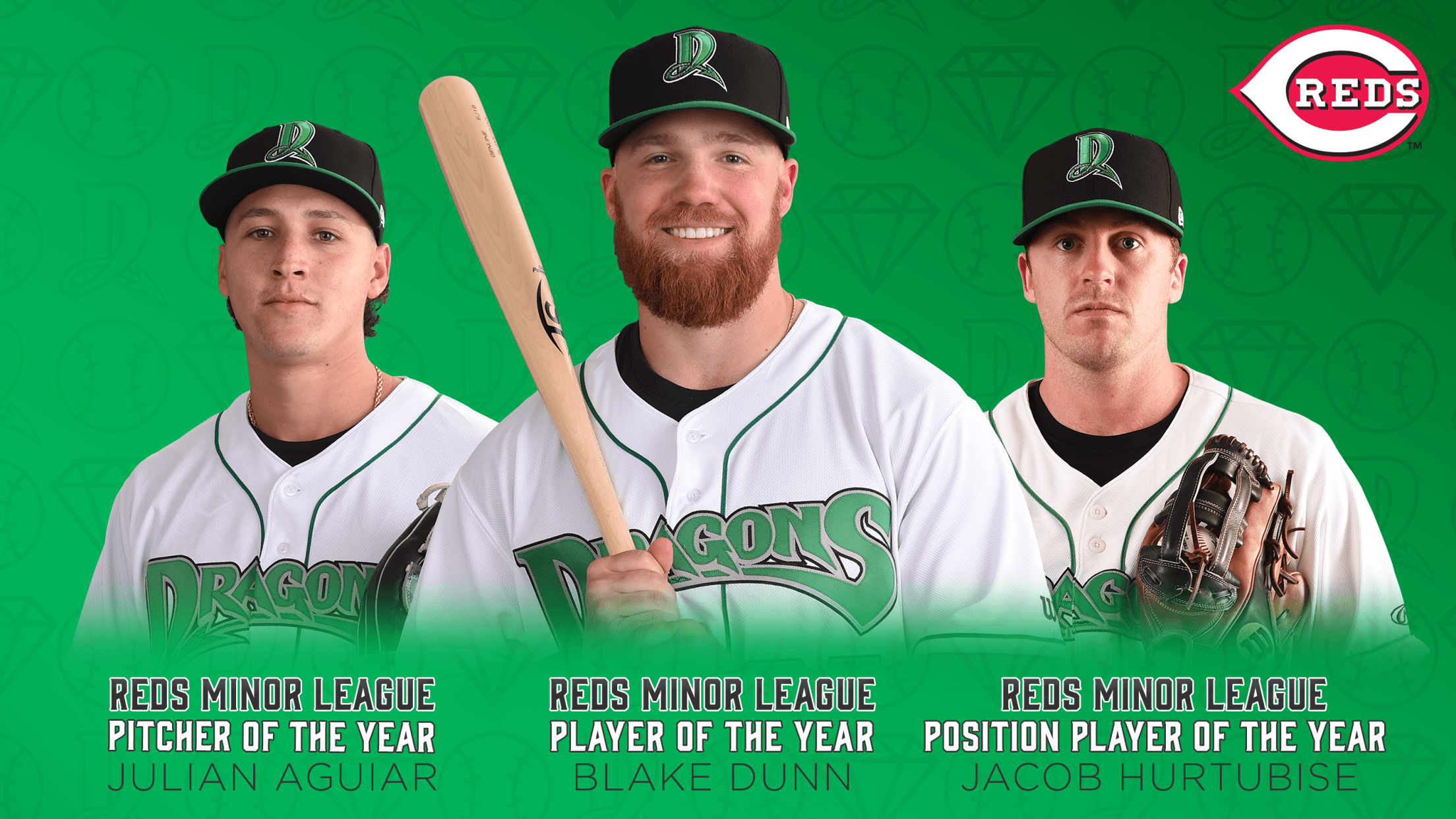 Additionally, Julian Aguiar, the ace of the Dragons pitching staff in 2023, was named Reds Minor League Pitcher of the Year. The third major honor, Reds Minor League Position Player of the Year, was awarded to Jacob Hurtubise, a member of the 2021 Dragons who spent the 2023 season at Double-A Chattanooga and Triple-A Louisville.