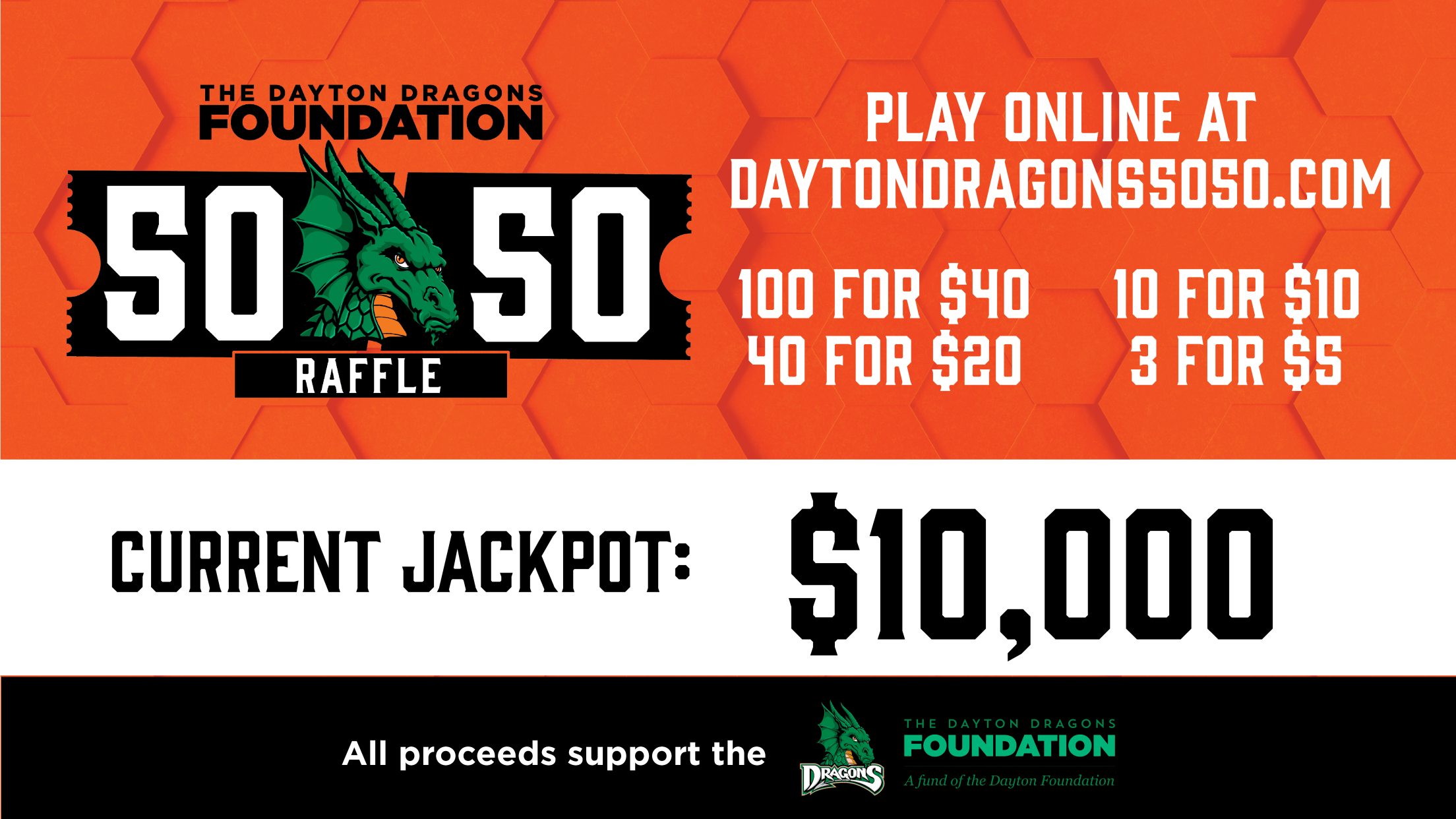 DAYTON, OHIO – The Dragons are excited to announce the first 50/50 raffle of the 2023 season with a starting jackpot of $10,000! One lucky fan will win big in the Dragons largest ever starting jackpot.