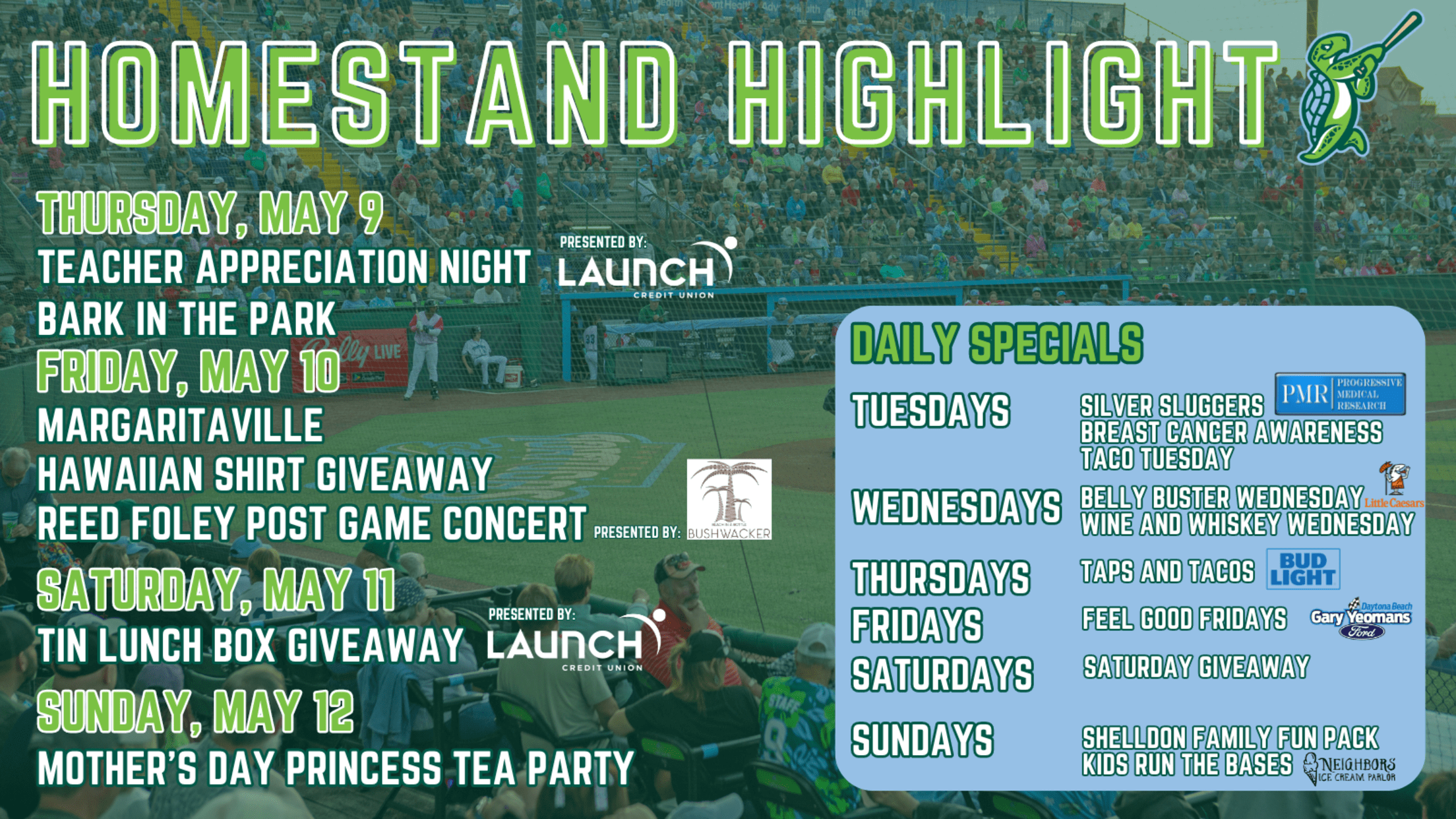 Hawaiian Shirt Giveaway, Mother's Day Tea Party, and Reed Foley Postgame Concert Presented by Bushwacker Spirits Packs Third Homestand of Season