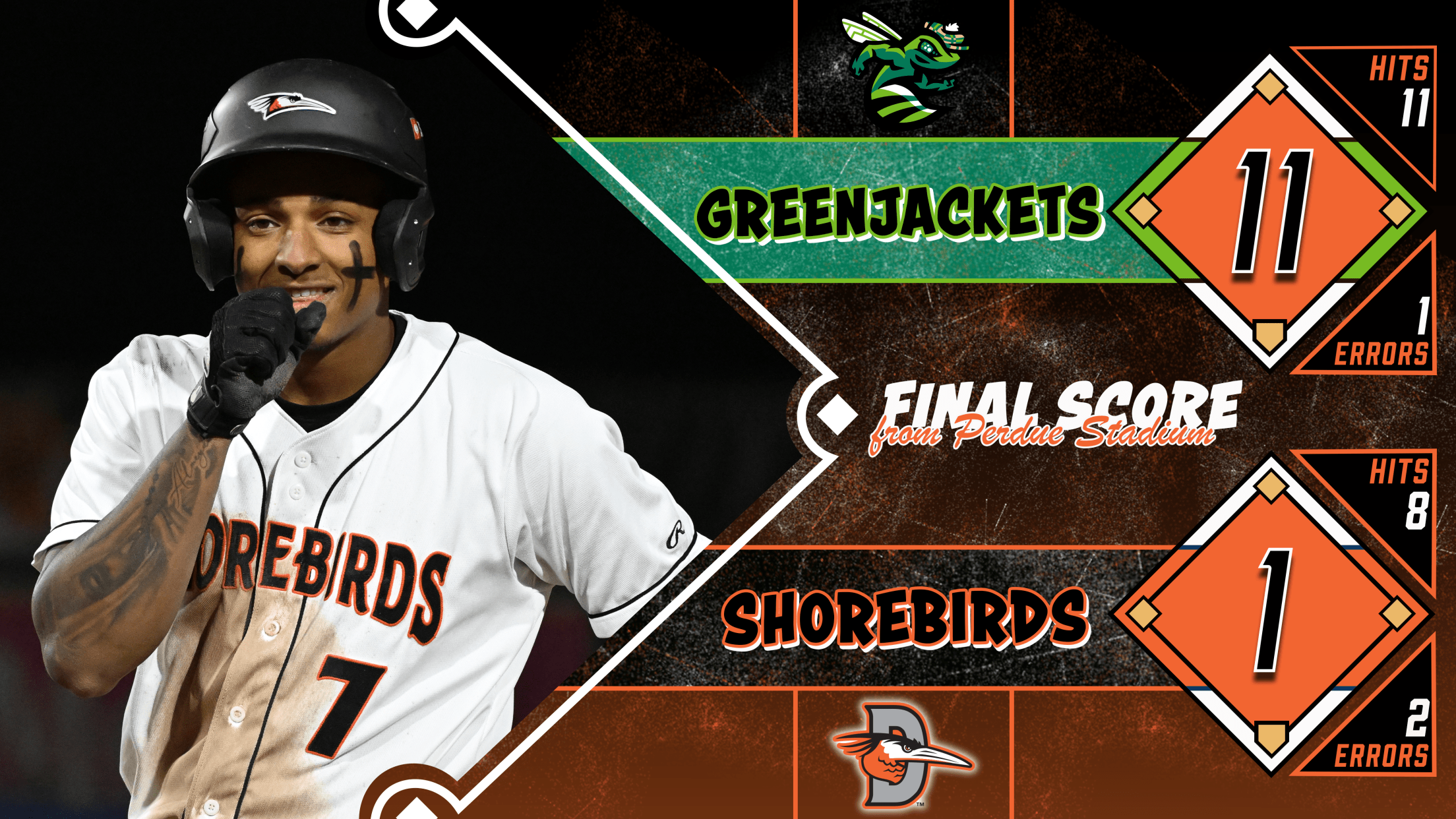 Augusta Rallies Past Delmarva to Win Back-And-Forth Affair Shorebirds Homer Three Times but Fall to GreenJackets SALISBURY, MD: The Delmarva Shorebirds (1-3) were defeated by the Augusta GreenJackets (1-3) in the home opener at Perdue Stadium on Tuesday, 10-7. Augusta jumped out to a 1-0 lead in the first inning
