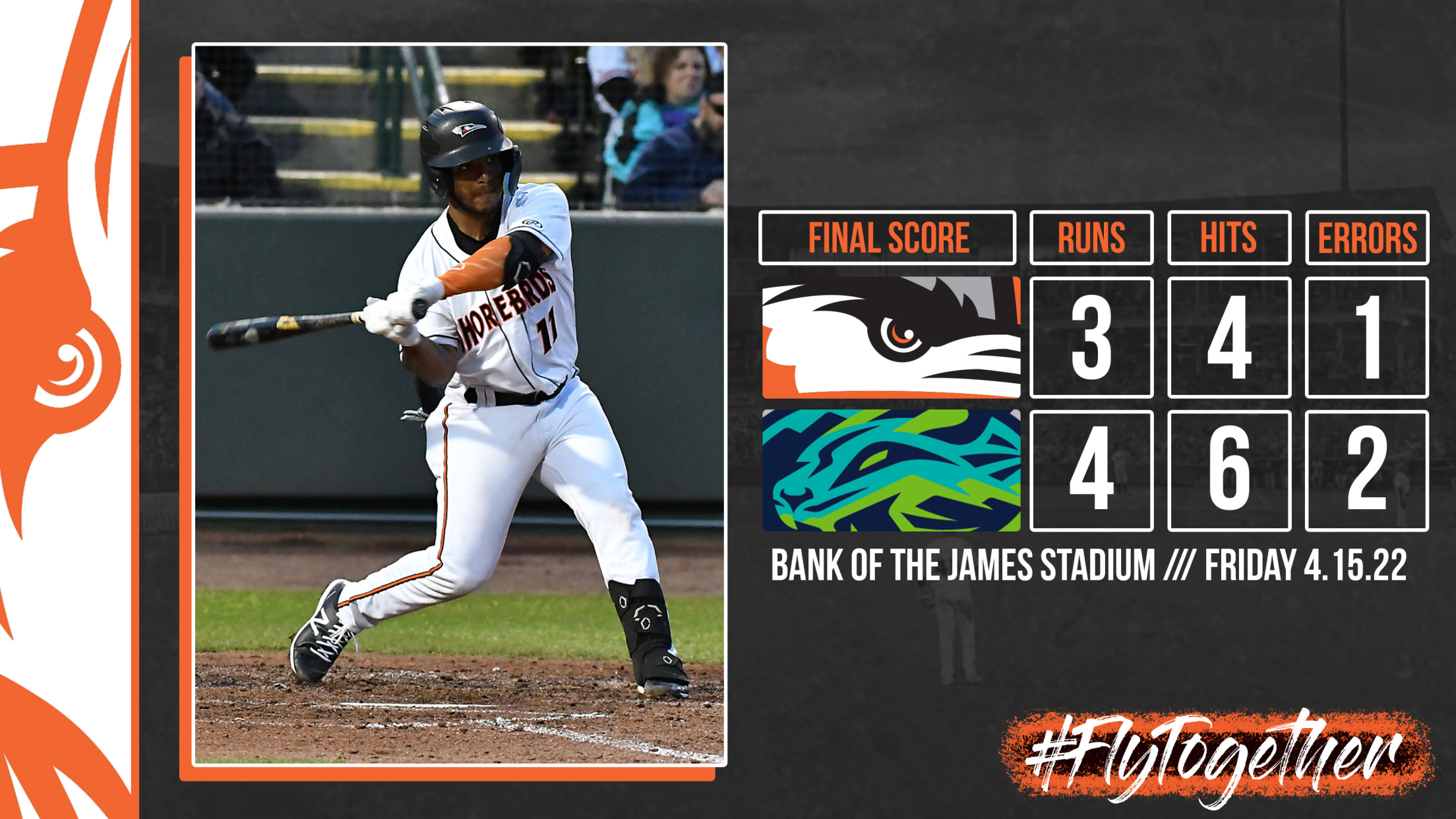 LYNCHBURG, VA – The Delmarva Shorebirds were walked-off on for the first time this year as the Lynchburg Hillcats used a ninth inning rally to defeat the Shorebirds 4-3 on Friday night at the Bank of James Stadium For the first time in the series, the Hillcats (2-5) managed to