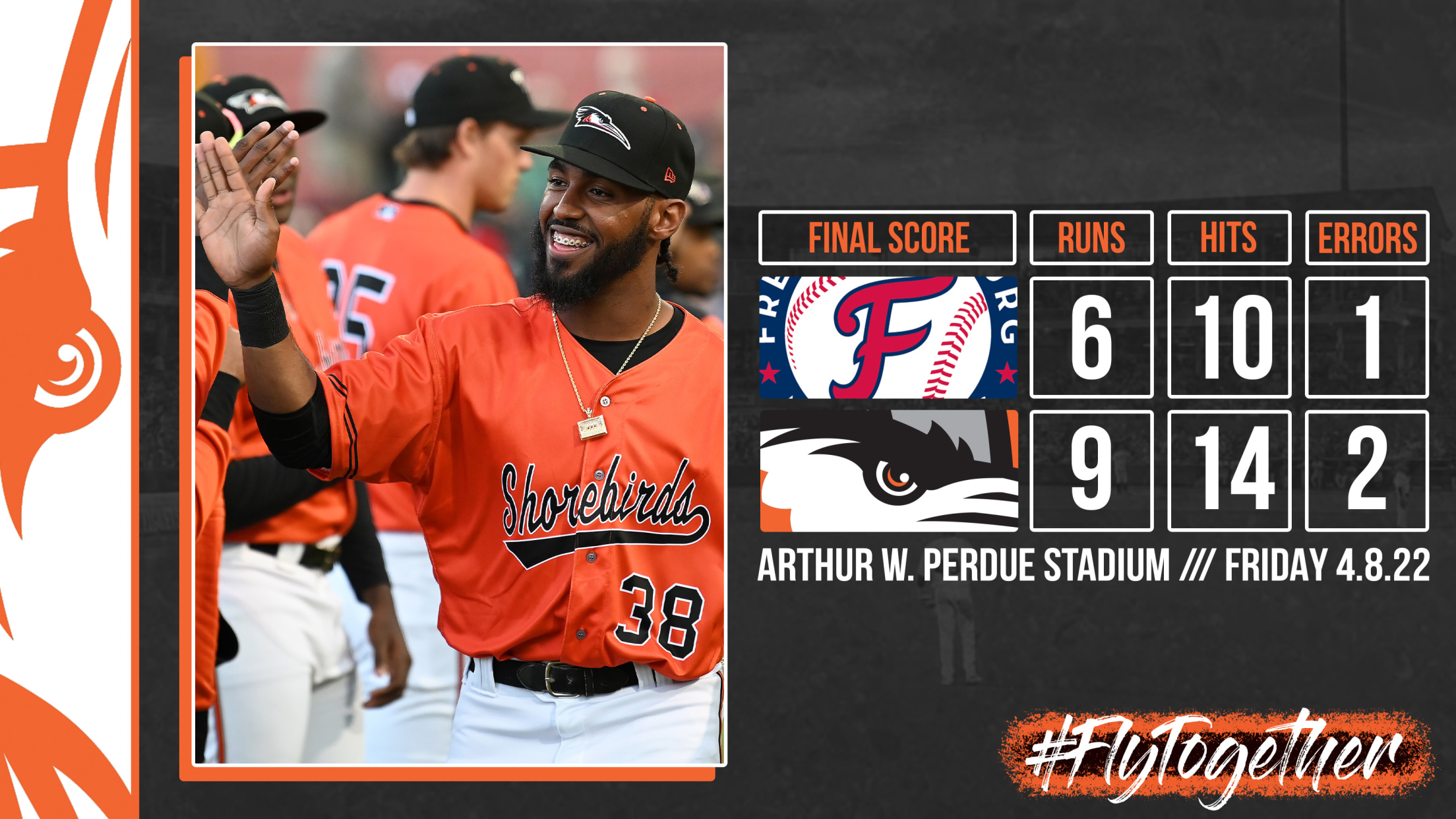 SALISBURY, MD – The Delmarva Shorebirds stormed back for an Opening Night 9-6 victory over the Fredericksburg Nationals on Friday night at Arthur W. Perdue Stadium.
