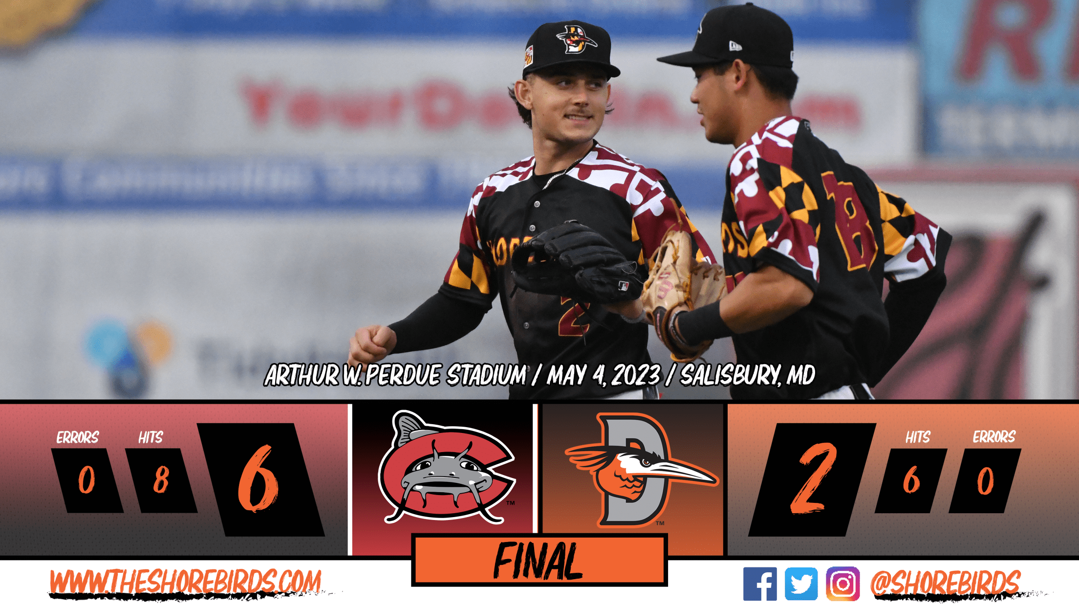The Shorebirds went down in order in the bottom of the ninth as the Mudcats held on for a 6-2 win in game three.