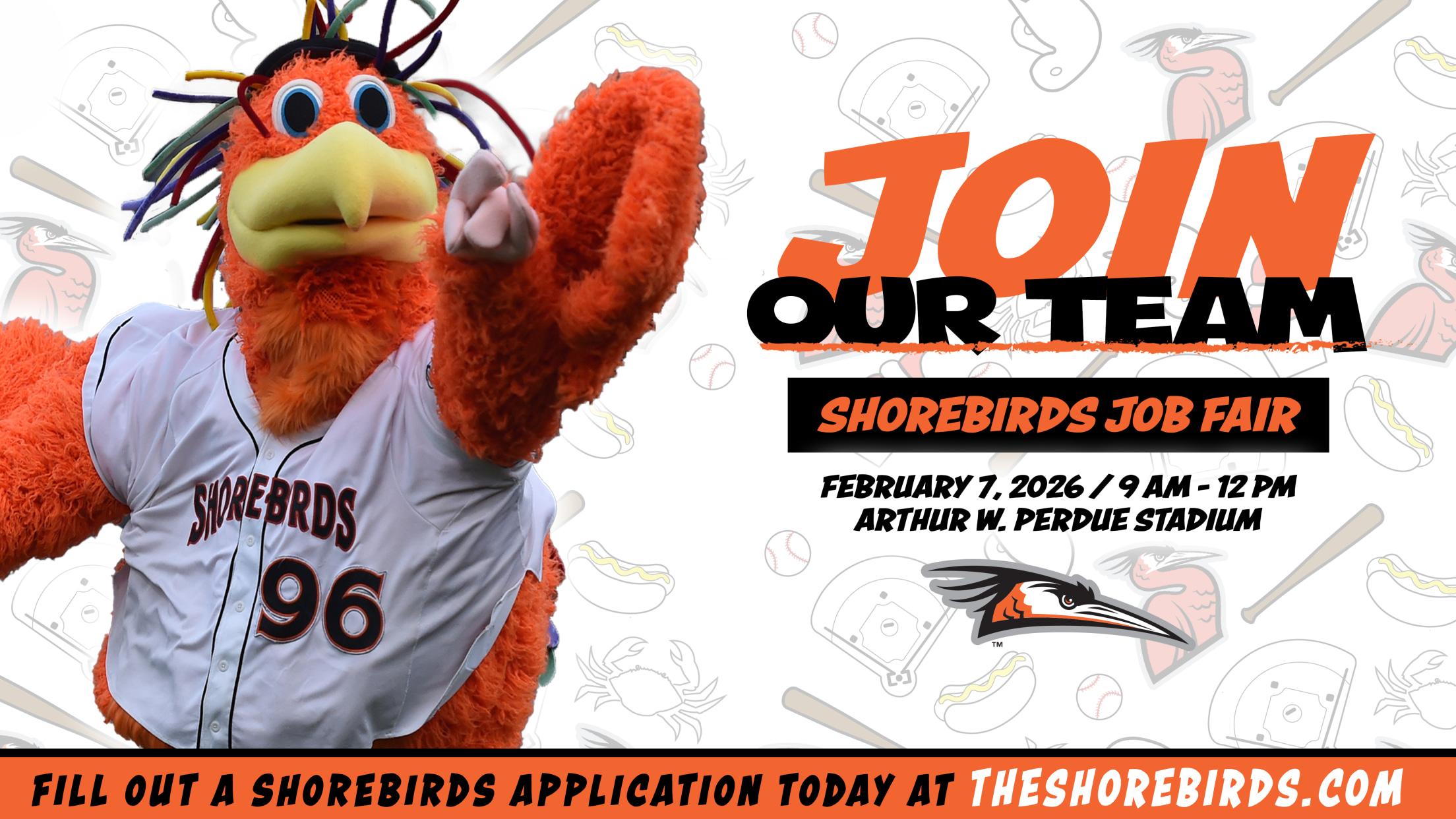 The Shorebirds staff is vital to powering the Shorebirds each and every season and making the magic of Perdue Stadium a reality for fans. The Shorebirds encourage all candidates to show up to the Shorebirds Job Fair on February 7 to be part of the best crew on the shore!