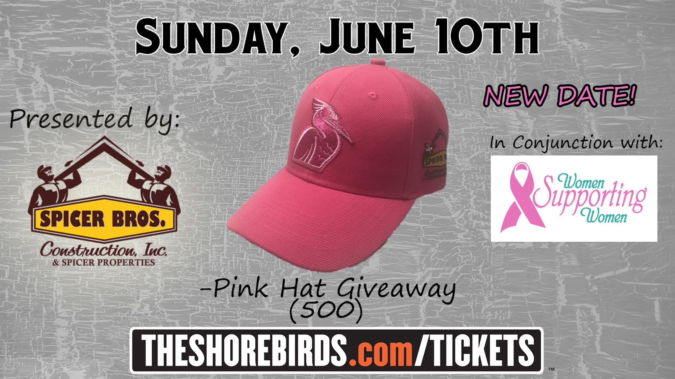 SALISBURY, Md. -- The Delmarva Shorebirds, along with Spicer Bros. Construction, Inc. and in conjunction with Women Supporting Women, are pleased to announce that 500 pink Shorebirds hats will be given away on Sunday, June 10th.