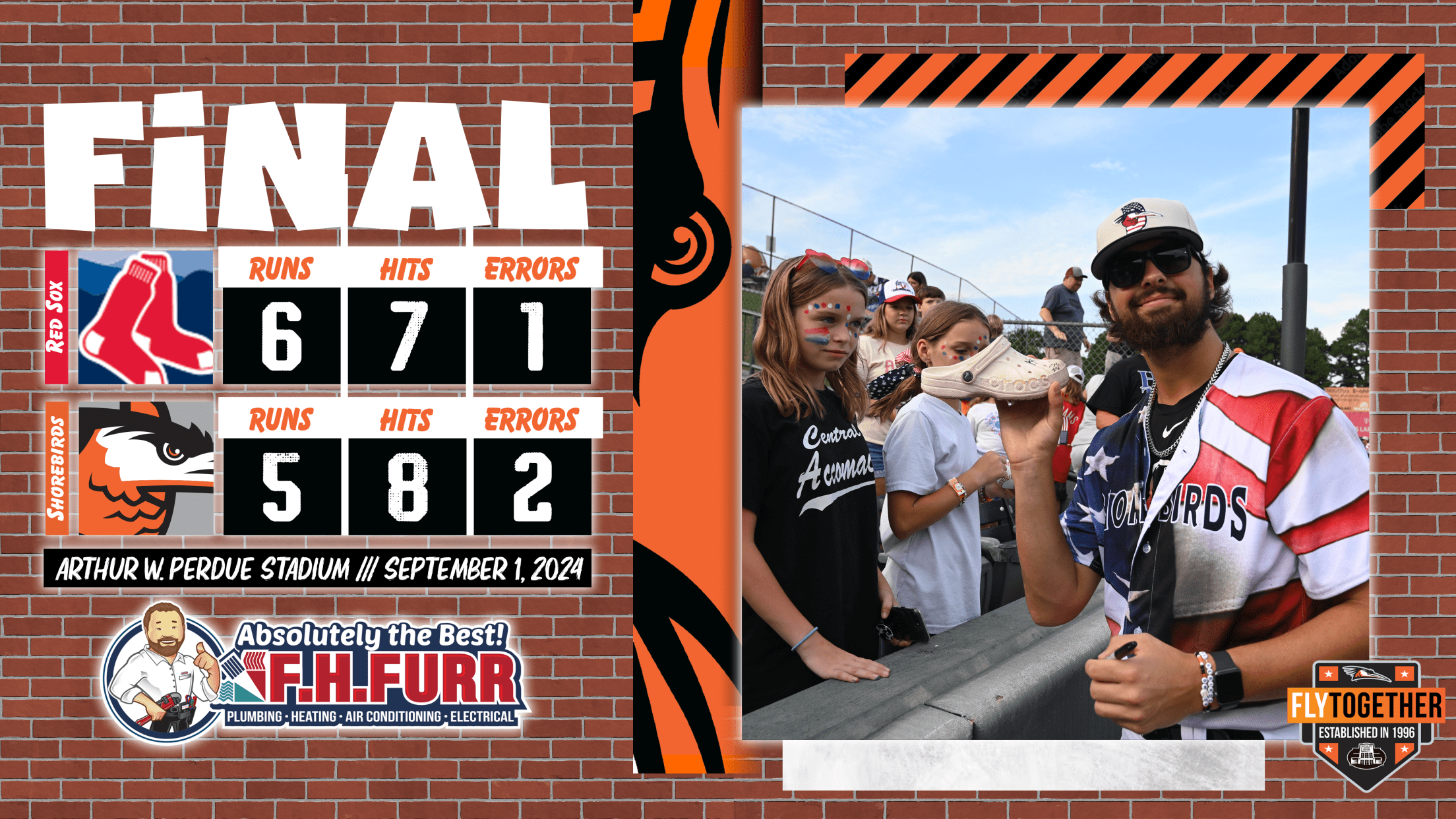 SALISBURY, MD: The Delmarva Shorebirds (50-75, 27-33) fell to the Salem Red Sox (67-59, 33-27) on Sunday afternoon by a final of 6-5.