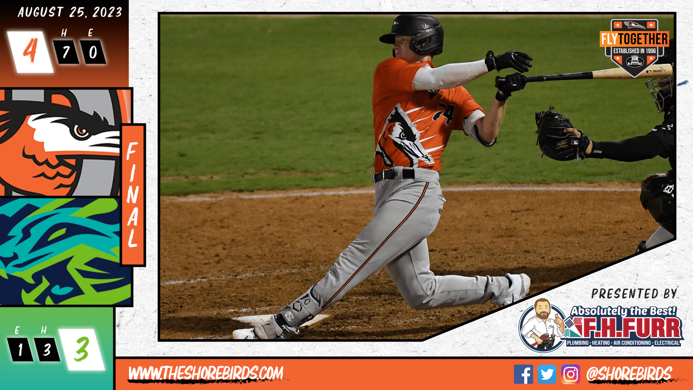 With the game still 2-1 in the seventh, the Shorebirds would up their lead thanks to a sacrifice fly by Enrique Bradfield Jr. that scored Randy Florentino. Mac Horvath then plated Adam Crampton with an RBI double to give Delmarva their largest advantage of the game at 4-1.