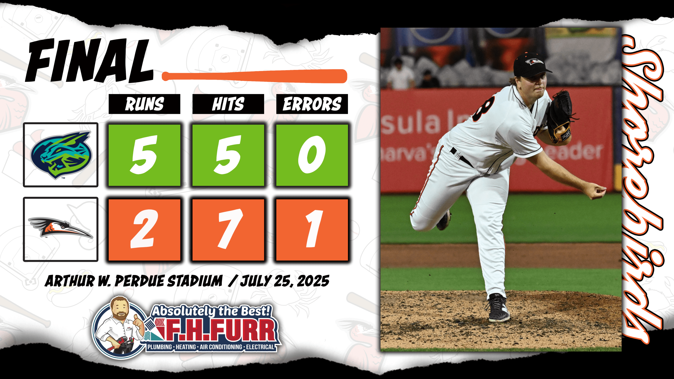 SALISBURY, MD: The Delmarva Shorebirds (35-59, 8-20) were defeated by the Lynchburg Hillcats (53-40, 12-15) on Friday night by a final score of 5-2.