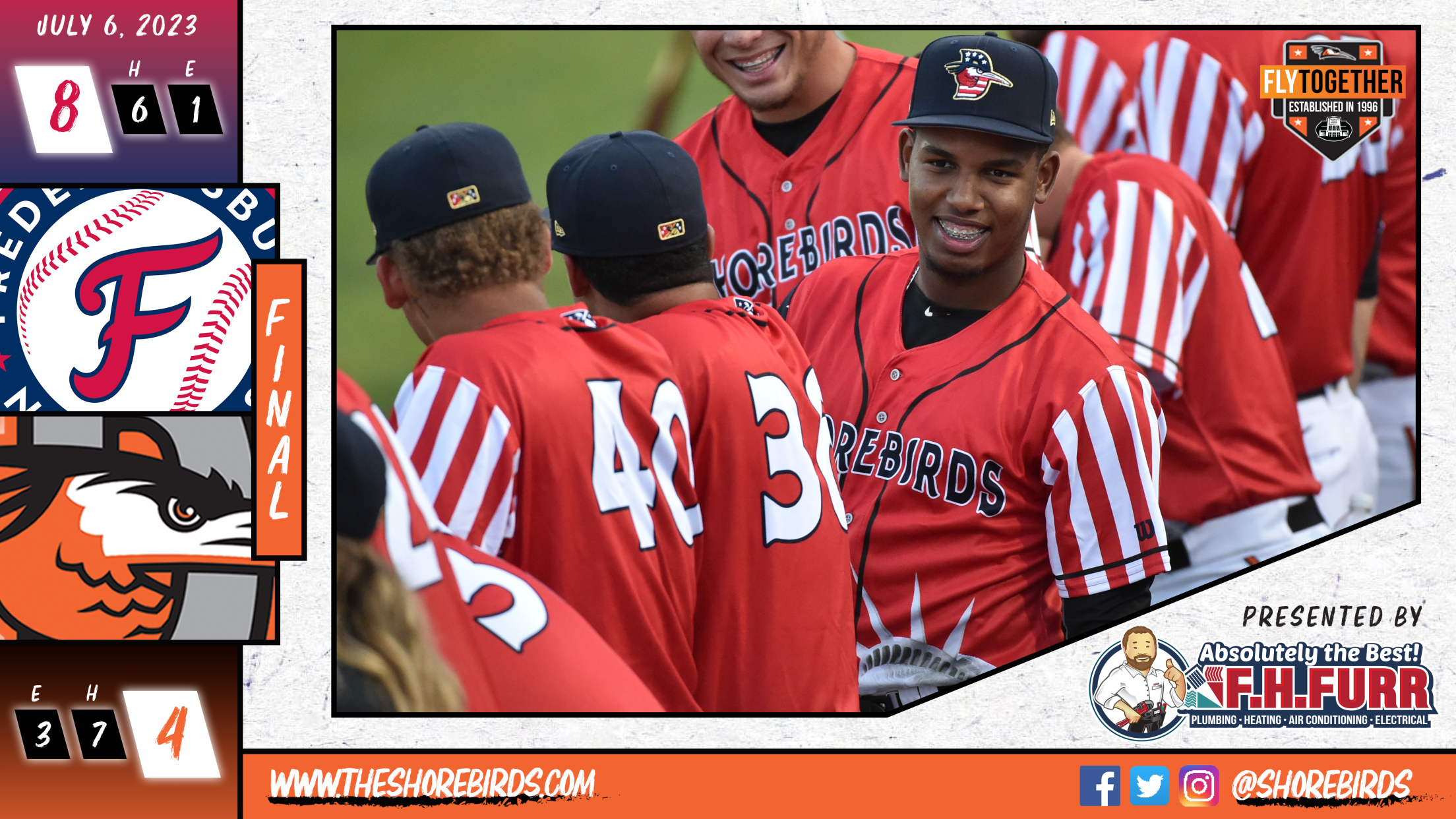 Mason Denaburg (4-3) was the winner in relief for Fredericksburg with Angel Vargas (0-1) taking the loss for the Shorebirds. Bubba Hall (1) earned the save.