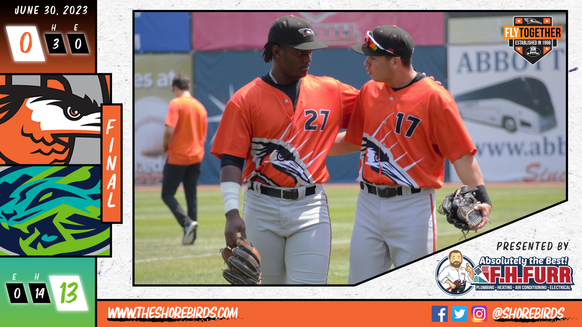 *LYNCHBURG, VA: *The Delmarva Shorebirds (3-3) took one on the chin on Friday night as they were soundly defeated by the Lynchburg Hillcats (4-2) 13-0.