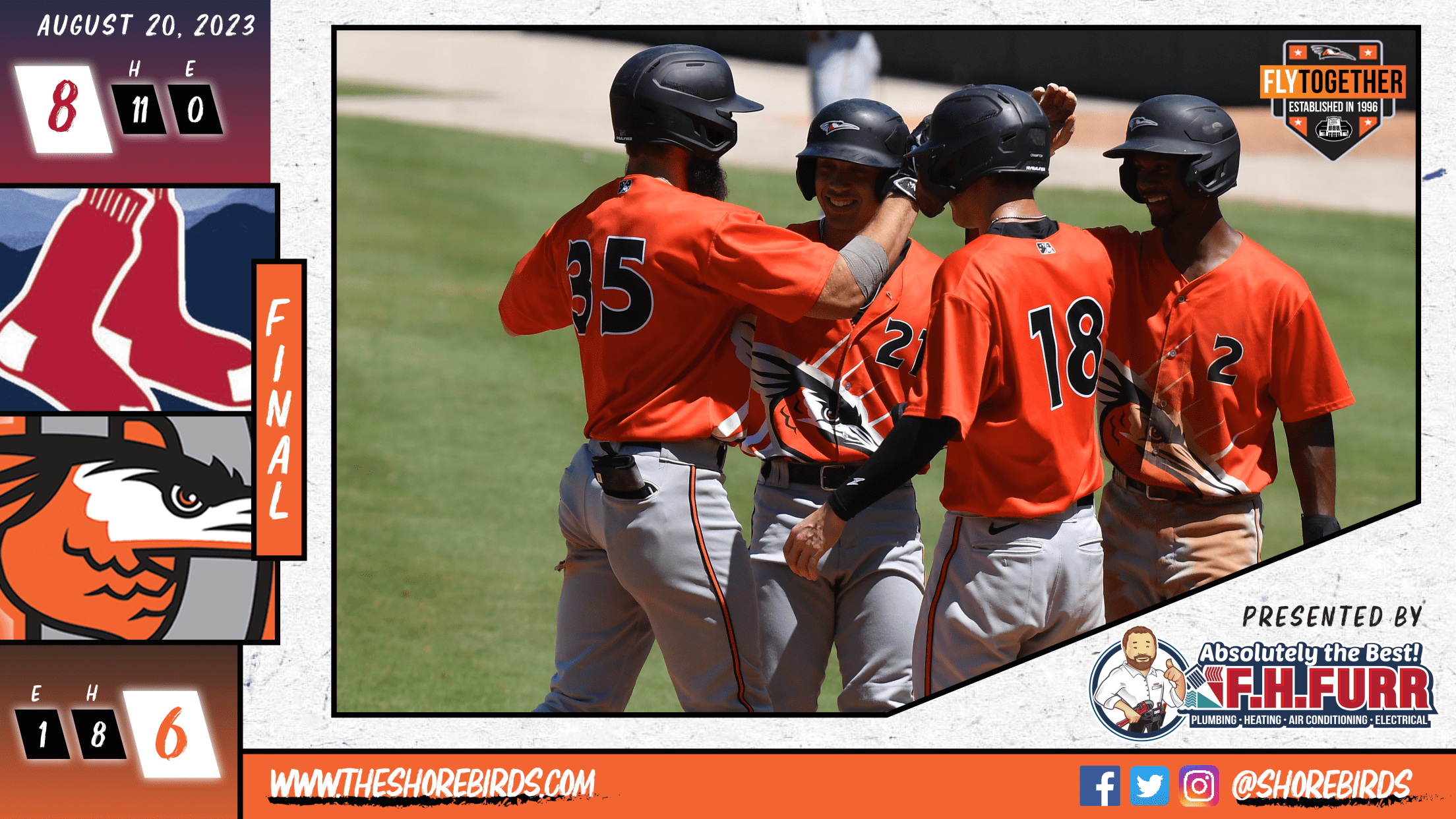The Red Sox would rally in the sixth and then some as Luis Ravello tied the game with a two-run homer. Albertson Asigen then delivered with the bases loaded as he singled into right field to score two more runs, putting Salem ahead 4-2. Albert Feliz put an exclamation point on the inning with a three-run blast to left field to suddenly put the Shorebirds behind 7-2.