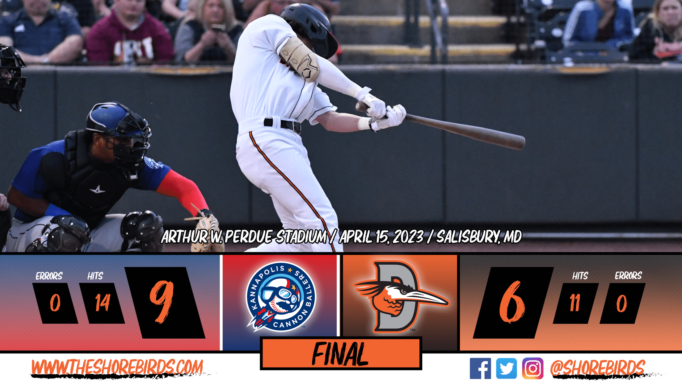 Shorebirds Late Comeback Effort Falls Short Delmarva Unable to Overcome Early Deficit SALISBURY, MD: The Delmarva Shorebirds (4-4) dropped their third consecutive game to the Kannapolis Cannon Ballers (4-3) on Saturday night by a score of 9-6. It was another quick start for the visiting Cannon Ballers as they registered