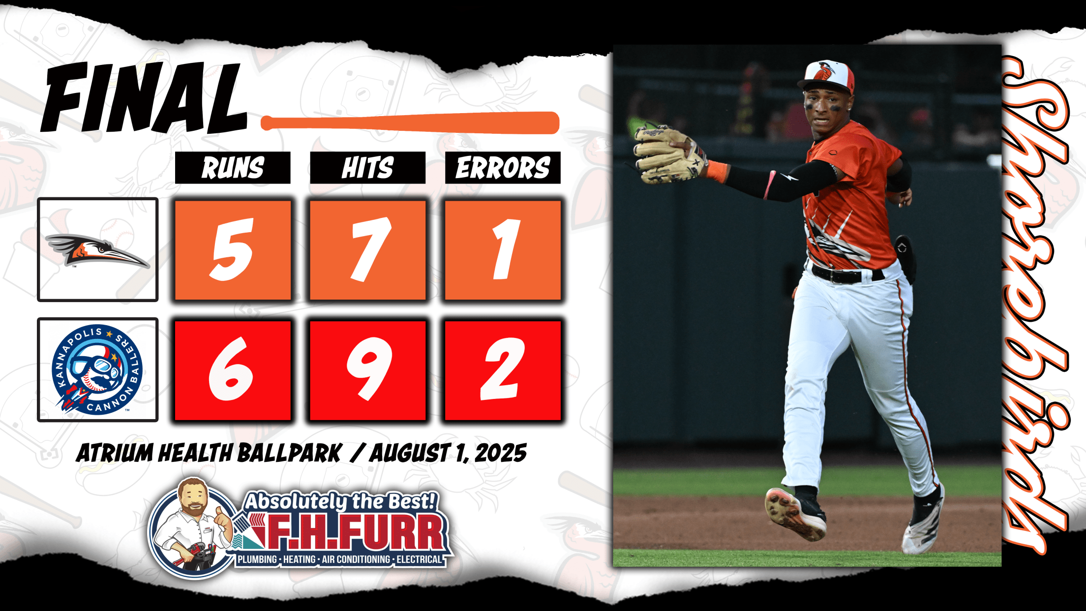 KANNAPOLIS, NC: The Delmarva Shorebirds (38-61, 11-22) were unable to extend their winning streak to three games on Friday as they fell to the Kannapolis Cannon Ballers (46-54, 14-20) 6-5.