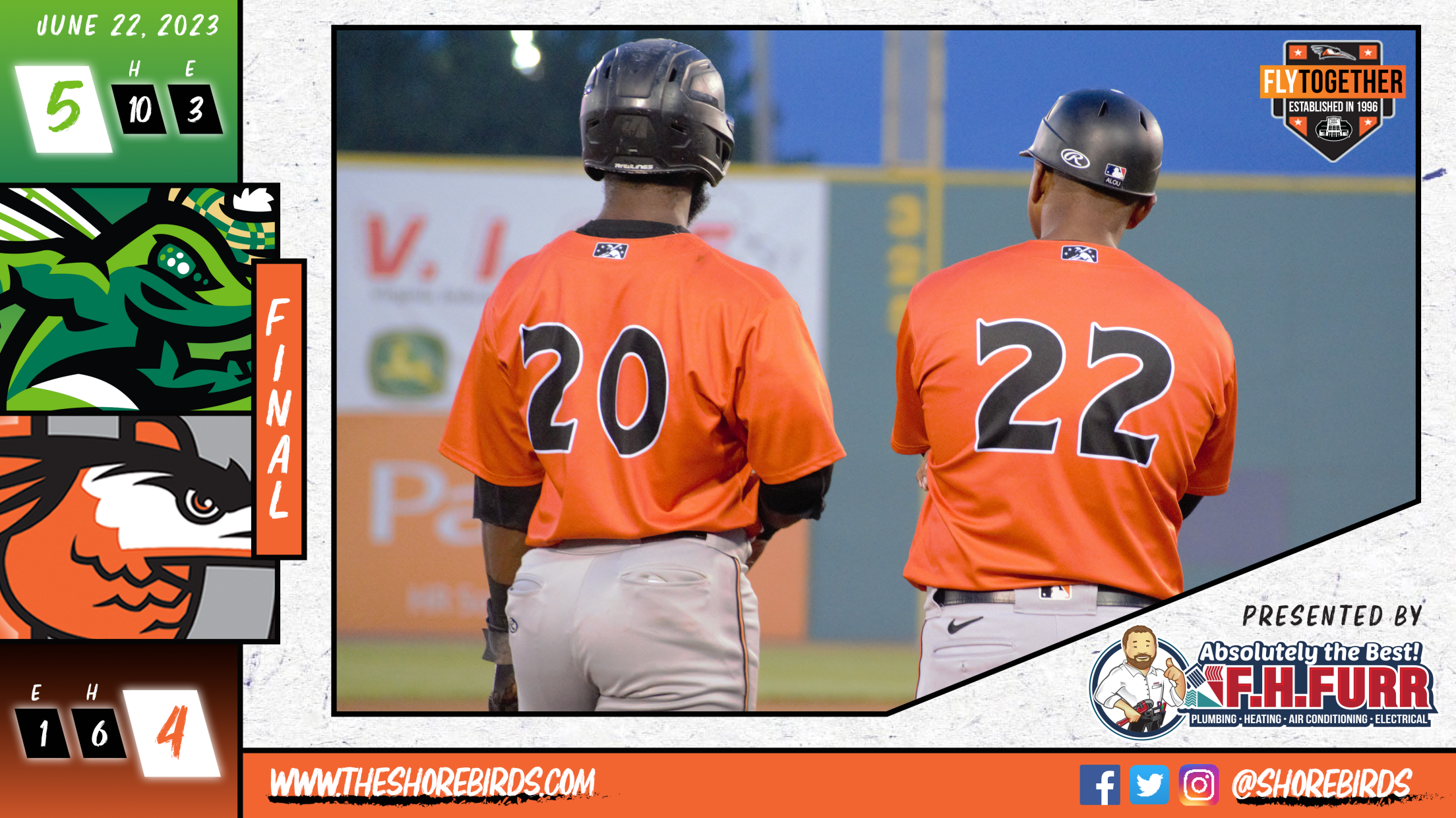 Landon Harper (5-3) earned the win in relief with Darlin Alcantara (3-4) taking the loss for the Shorebirds.