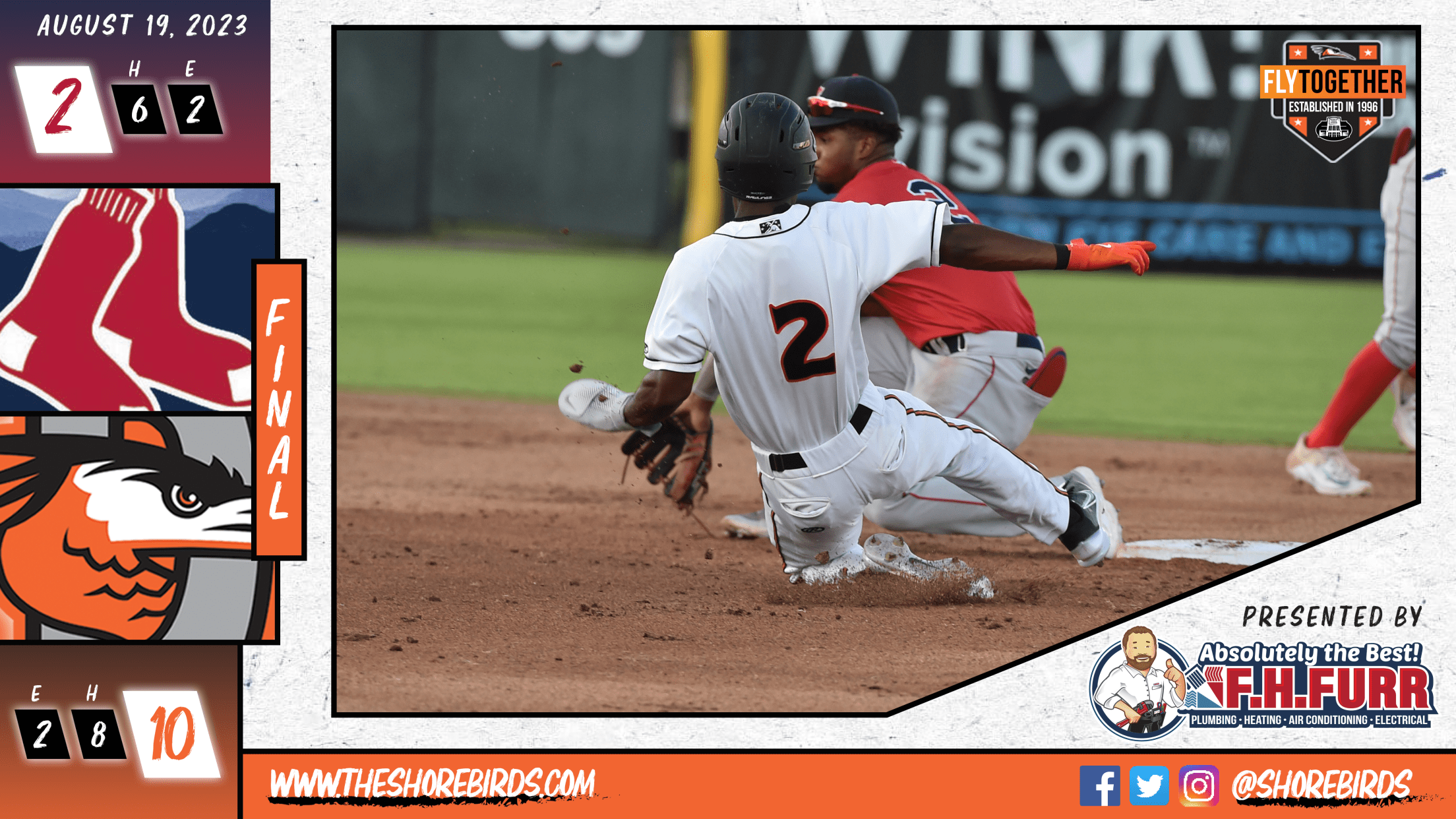 SALISBURY, MD: The Delmarva Shorebirds (20-26) earned their second win in a row over the Salem Red Sox (20-27) by a score of 10-2 on Saturday Night.