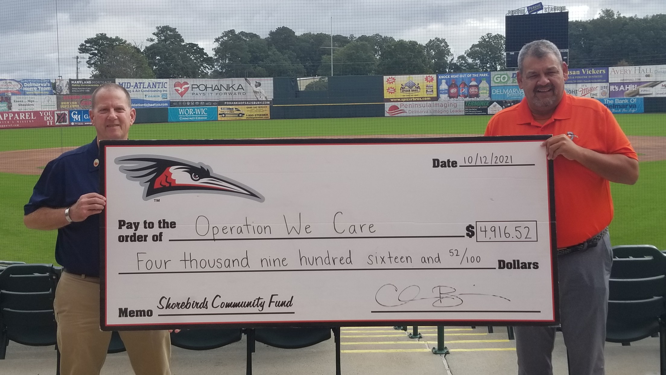 “Operation We Care is a great initiative that the Shorebirds are proud to support each and every year,” explained Shorebirds General Manager Chris Bitters. “Our men and women in our military, hospitals, and first responders have been battling on the front lines throughout the pandemic and we are thrilled to support them by donating to Operation We Care to aid in their efforts.”