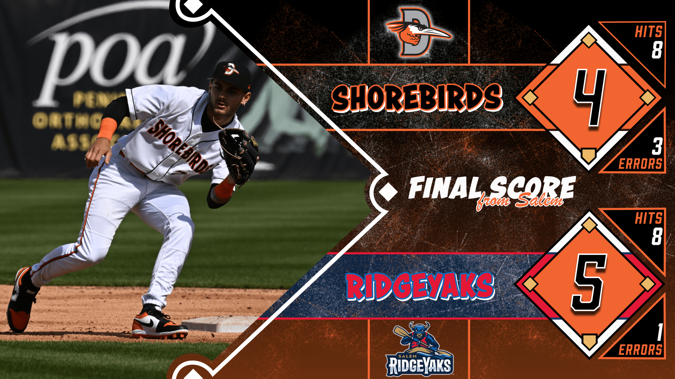 SALEM, VA: The Delmarva Shorebirds (0-1) were defeated by the Salem RidgeYaks (1-0) on opening night, 5-4.