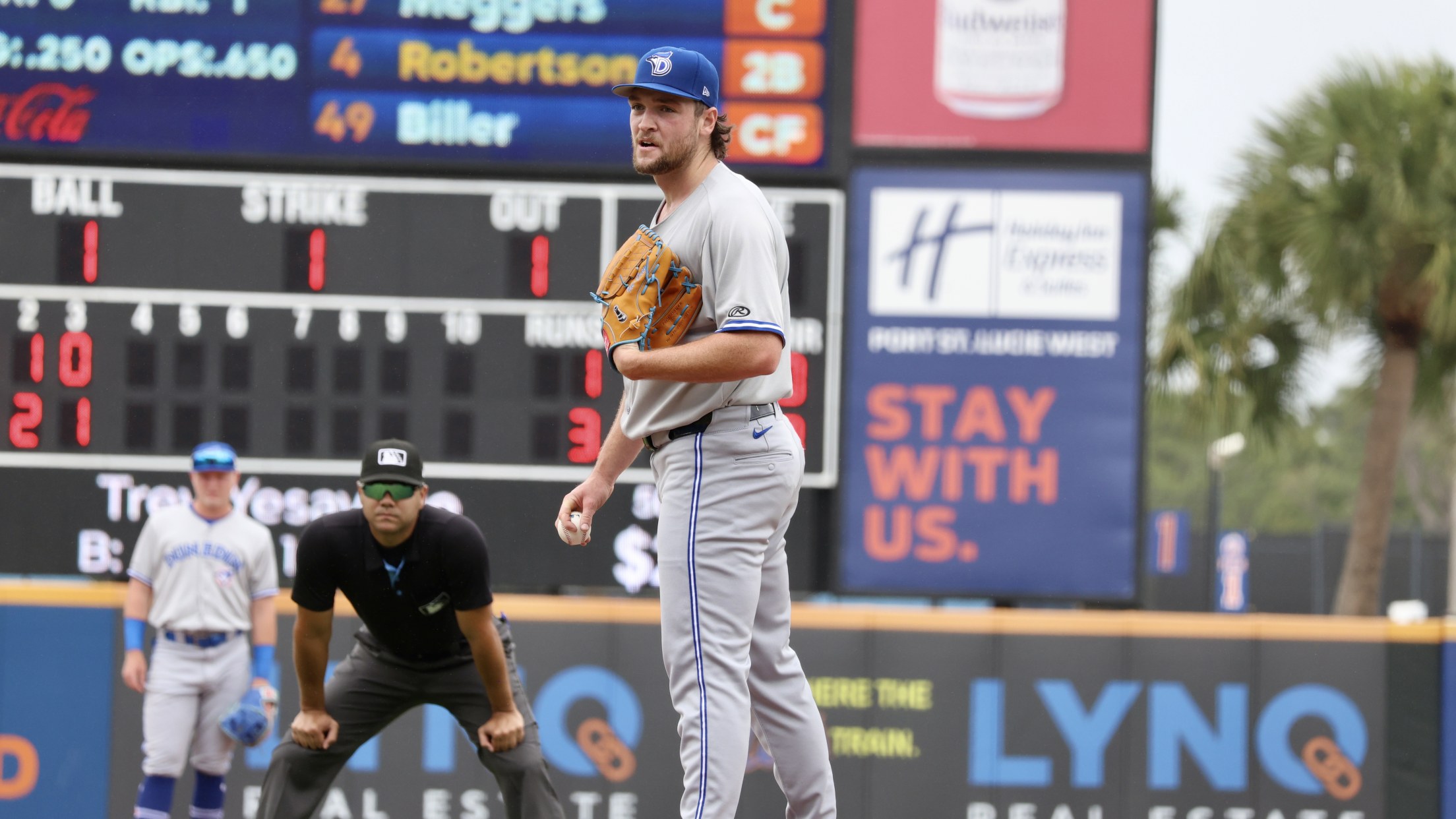 Port St. Lucie, FL – The Dunedin Blue Jays and St. Lucie Mets split a Thursday doubleheader at Clover Park, with Dunedin dropping game one 6-3 before bouncing back for a 6-5 win in the nightcap. Blue Jays pitching was dominant across the twin bill, combining to strike out 19