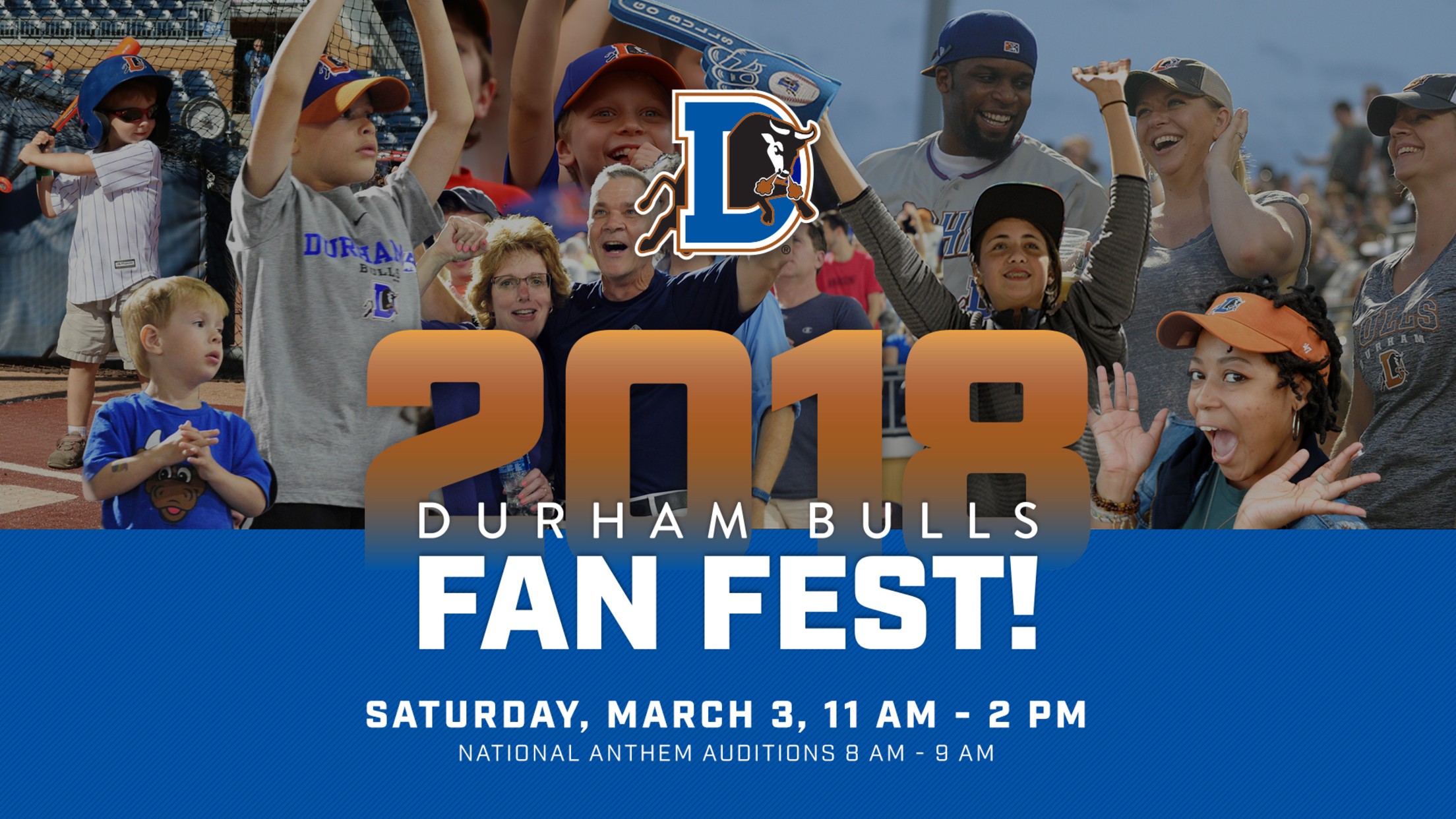 The Durham Bulls will host their 2018 Fan Fest on Saturday, March 3 from 11 a.m. to 2 p.m. to kick off the 2018 campaign at Durham Bulls Athletic Park. The free event provides fans a chance to take batting practice on the field, purchase single-game tickets for the 2018 season and take photos with the team's 2017 Triple-A National Championship and Governors' Cup trophies. Additionally, National Anthem auditions will take place prior to Fan Fest from 8 a.m. to 9 a.m.