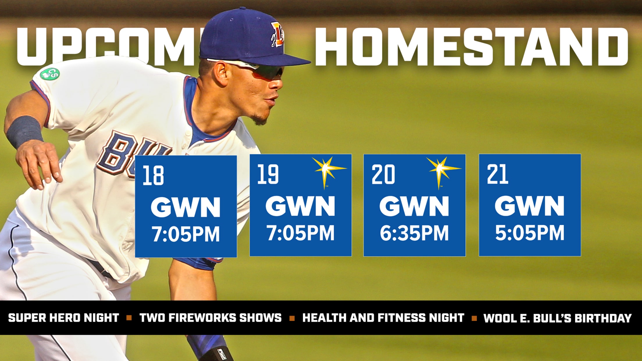 The homestand against Gwinnett concludes on Sunday, May 21 at 5:05 p.m., as the Bulls celebrate Wool E. Bull's birthday, as mascots from around the state will be in attendance to celebrate the birthday of the best mascot in Minor League Baseball. Sunday's game is a SunSational Sunday presented by Sun Tan City, and following the game Kids Run the Bases presented by Nature's Twist.
