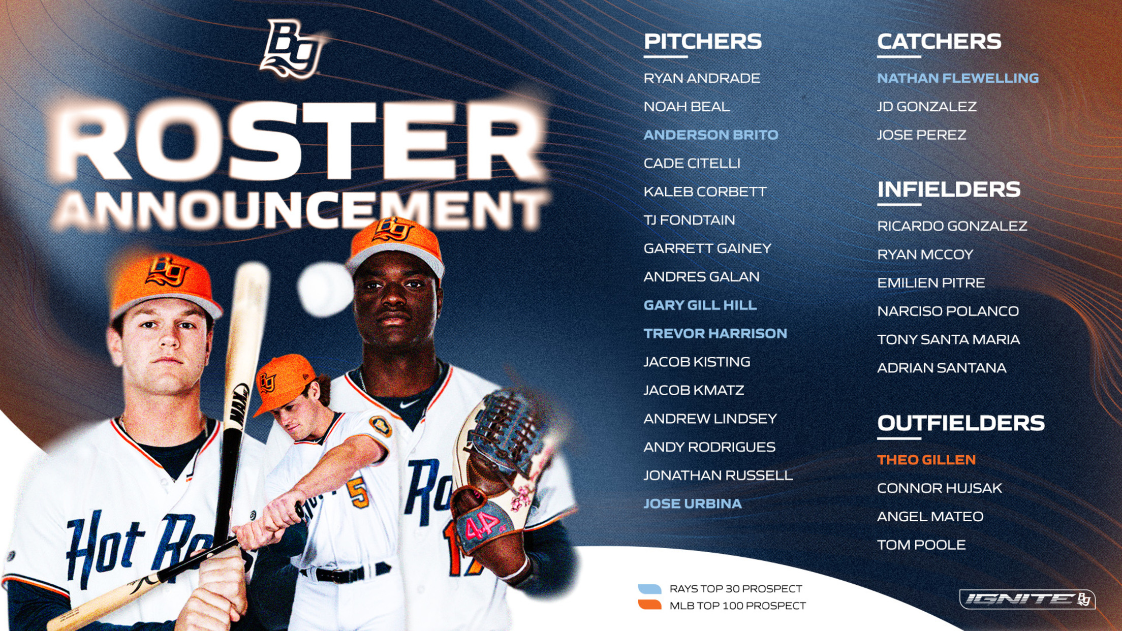 Hitters joining the Hot Rods for the first time include J.D. Gonzalez, Ricardo Gonzalez, Ryan McCoy, Connor Hujsak, and Tom Poole.