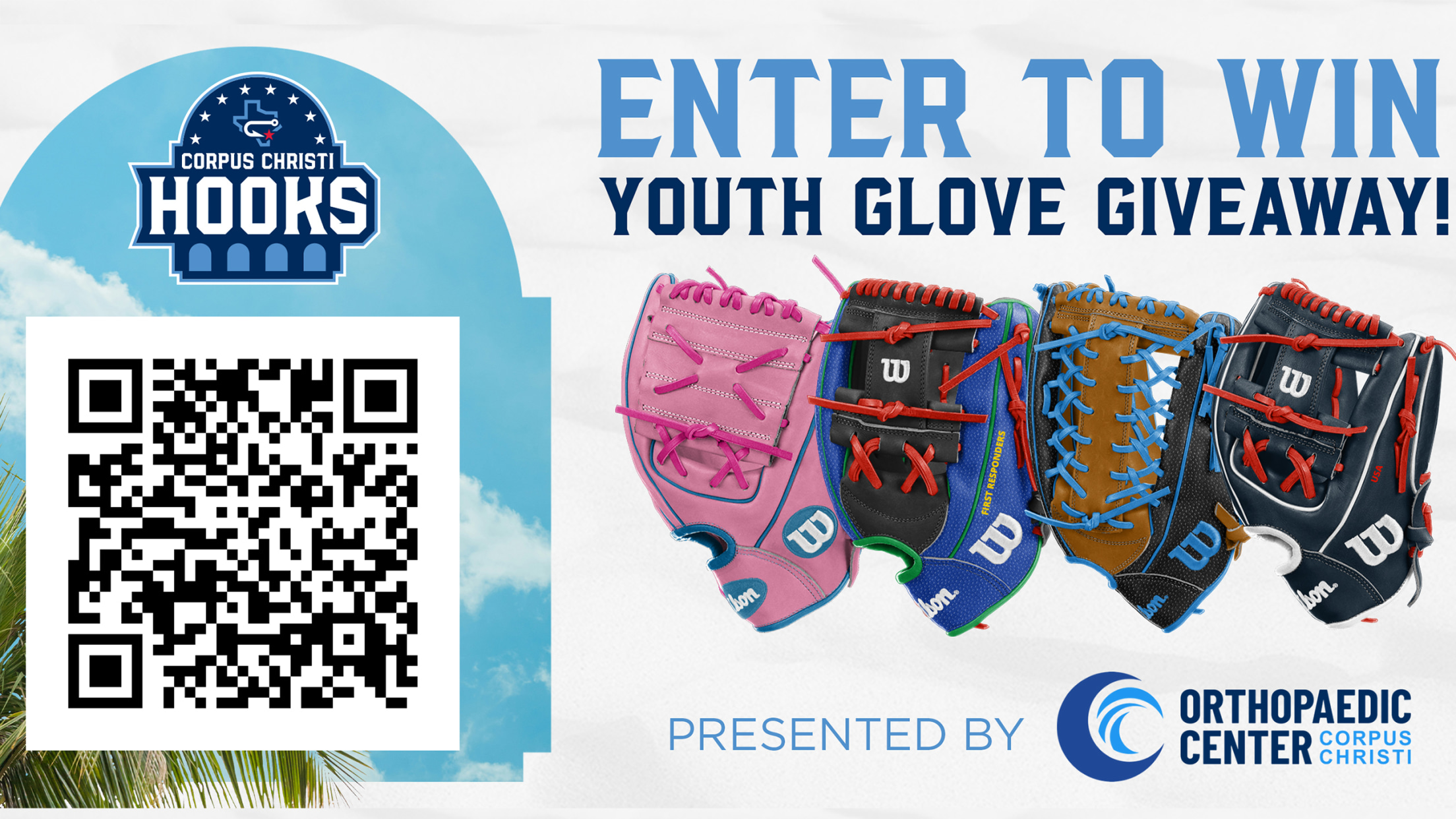 CORPUS CHRISTI – The Hooks Youth Glove Giveaway, presented by Orthopaedic Center of Corpus Christi, is live now at cchooks.com/contests.