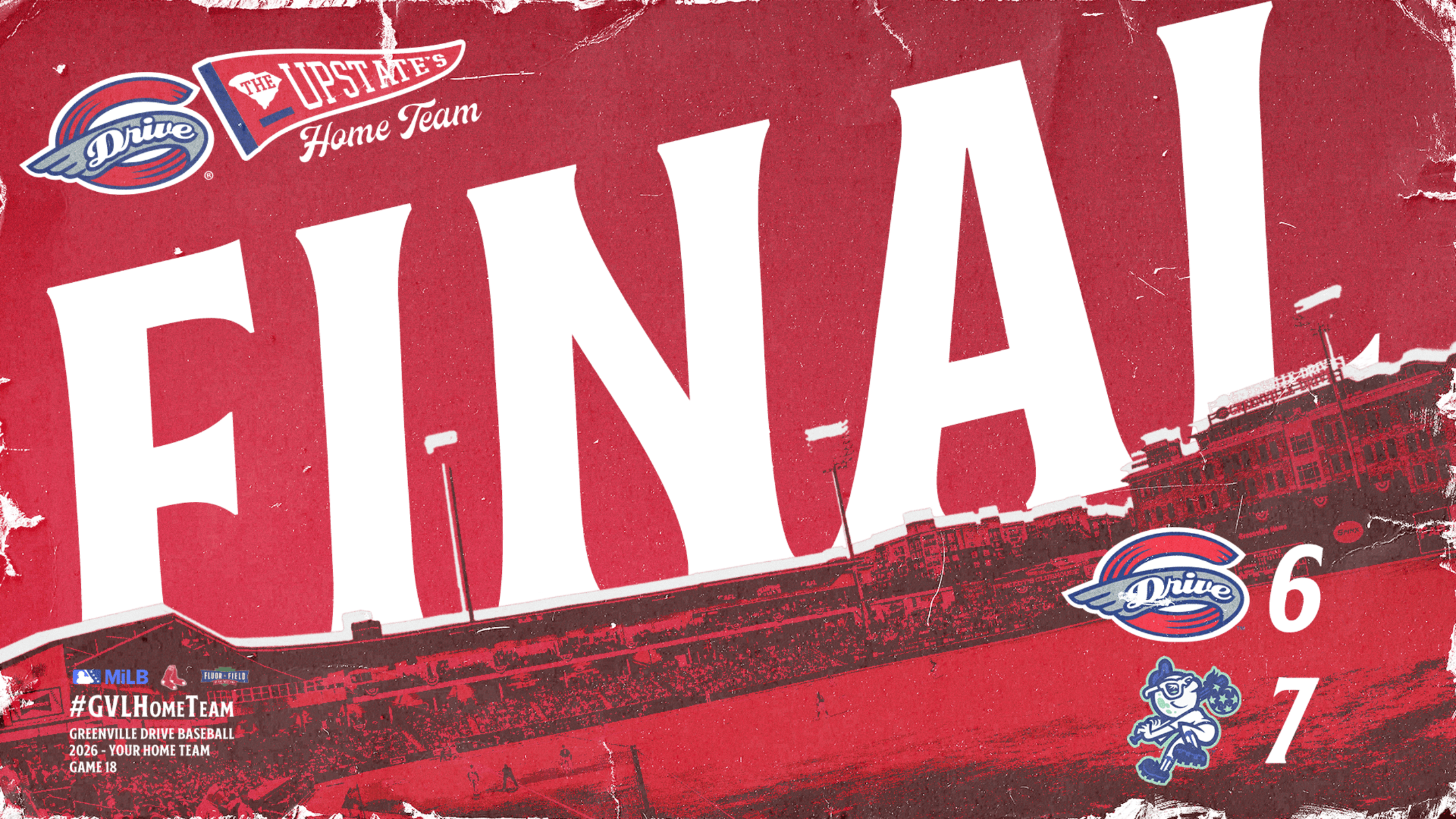 ASHEVILLE, N.C. — The Greenville Drive erased a five-run deficit with a late three-run surge in the eighth inning, but the Asheville Tourists pushed across the winning run in the 10th to hand Greenville a 7-6 loss Thursday night at HomeTrust Park in game three of the six-game series.