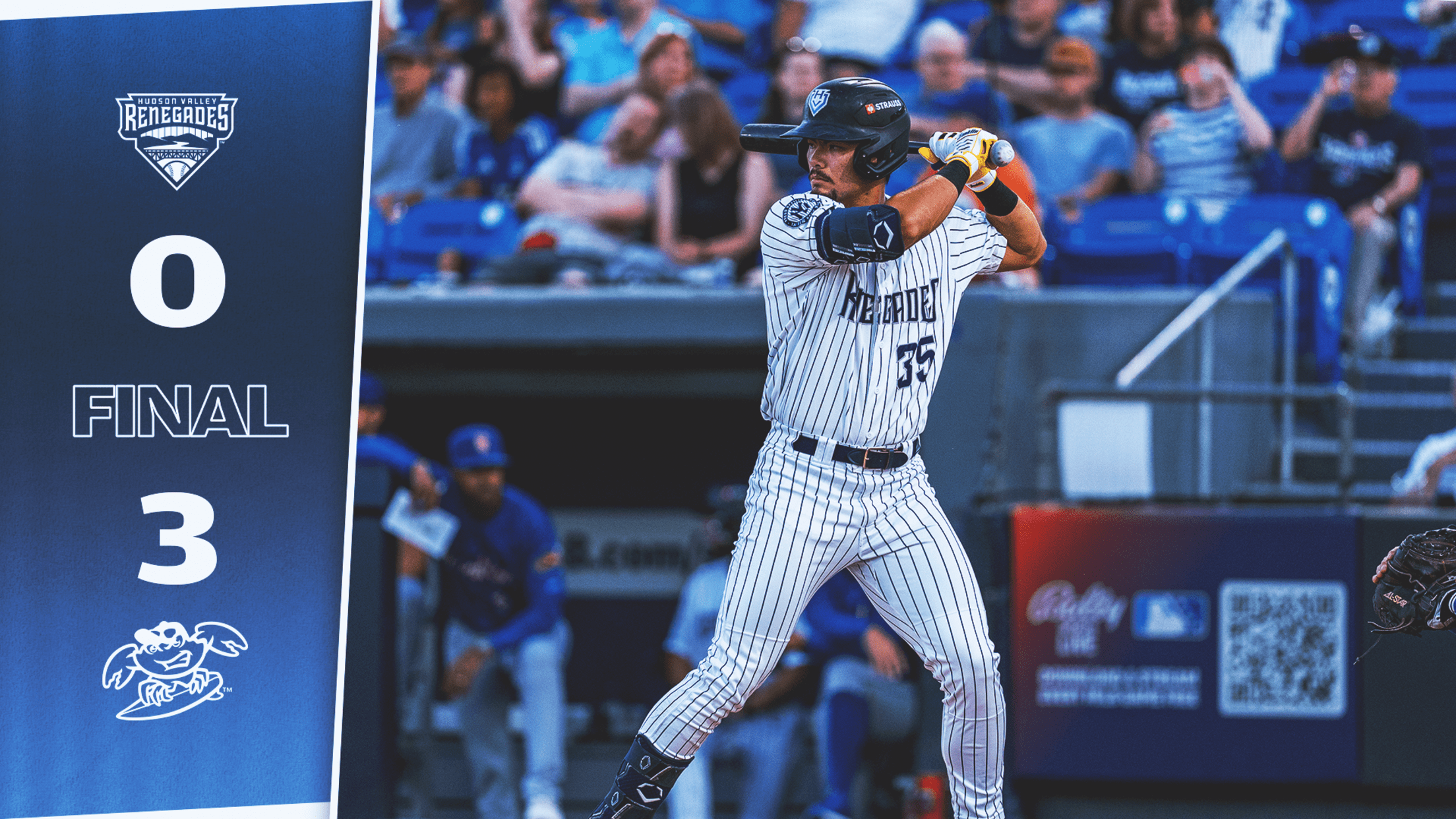 Lakewood, N.J. (Aug. 22, 2025) — Despite a strong start from Xavier Rivas, the Hudson Valley Renegades were shut out by the Jersey Shore BlueClaws 3-0 on Friday night at ShoreTown Ballpark.