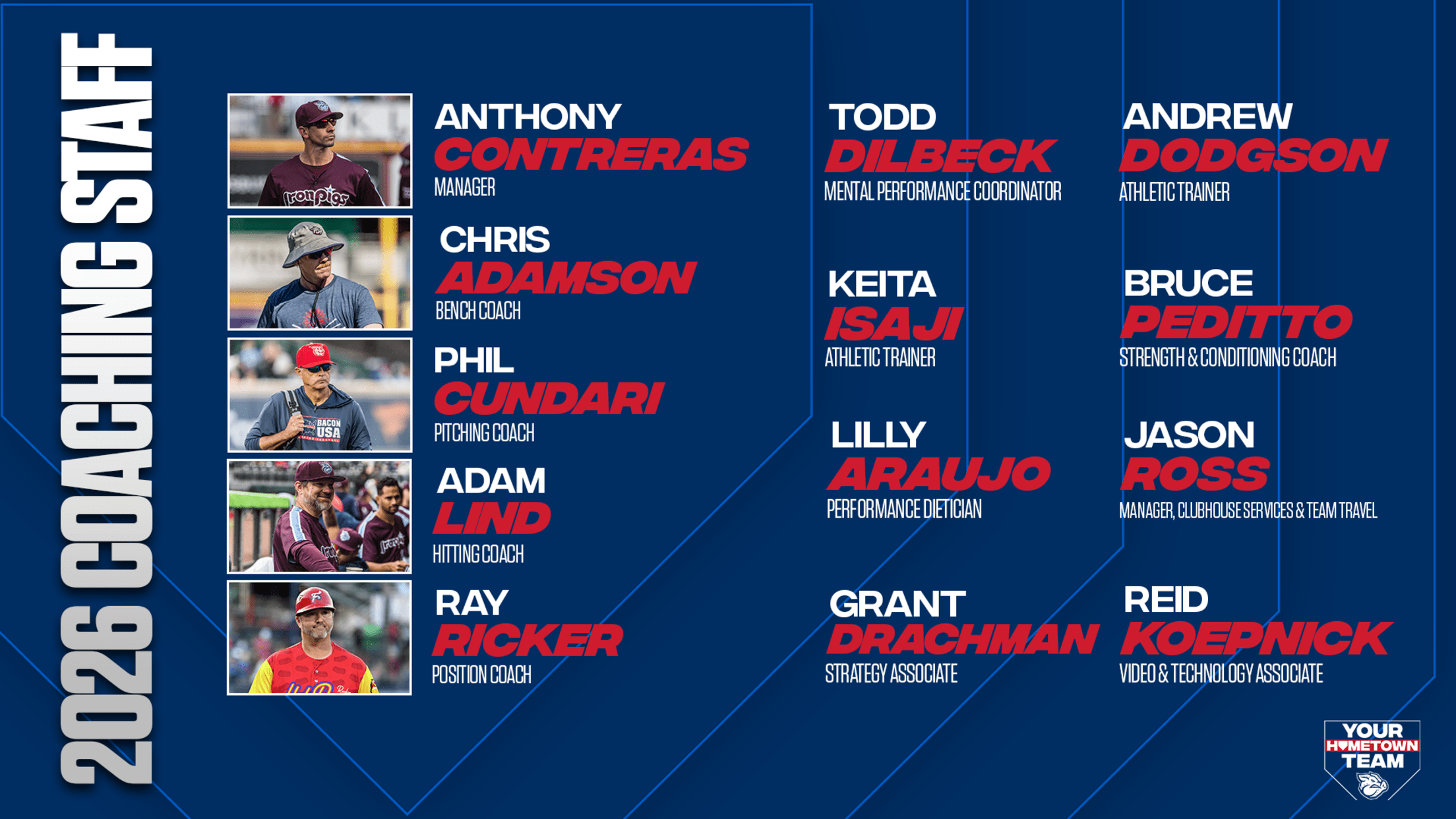 Allentown, Pennsylvania (February 6, 2026) – The Lehigh Valley IronPigs, in conjunction with the Philadelphia Phillies, have announced their coaching staff for the 2026 season. Anthony Contreras (Manager, 5th season) returns to manage the IronPigs for a fifth consecutive season, becoming the longest tenured manager in franchise history after he